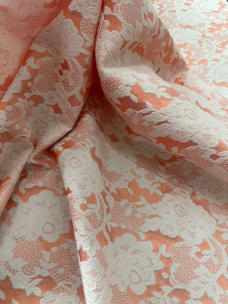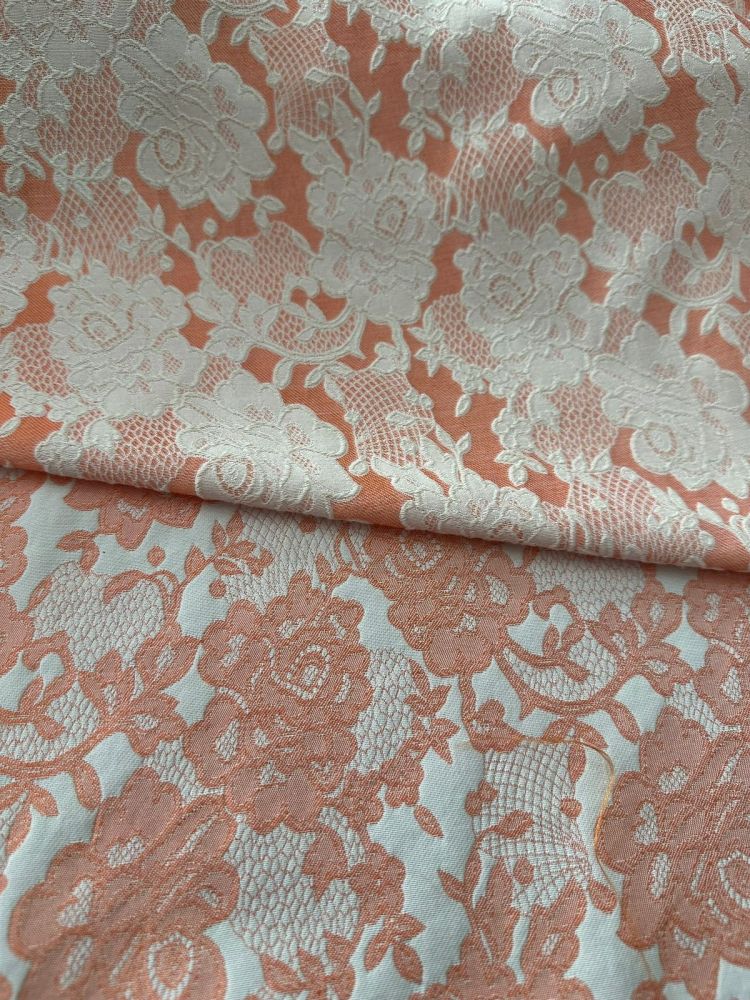 Tecido Jacquard Floral Dupla Face Relevo Salmão