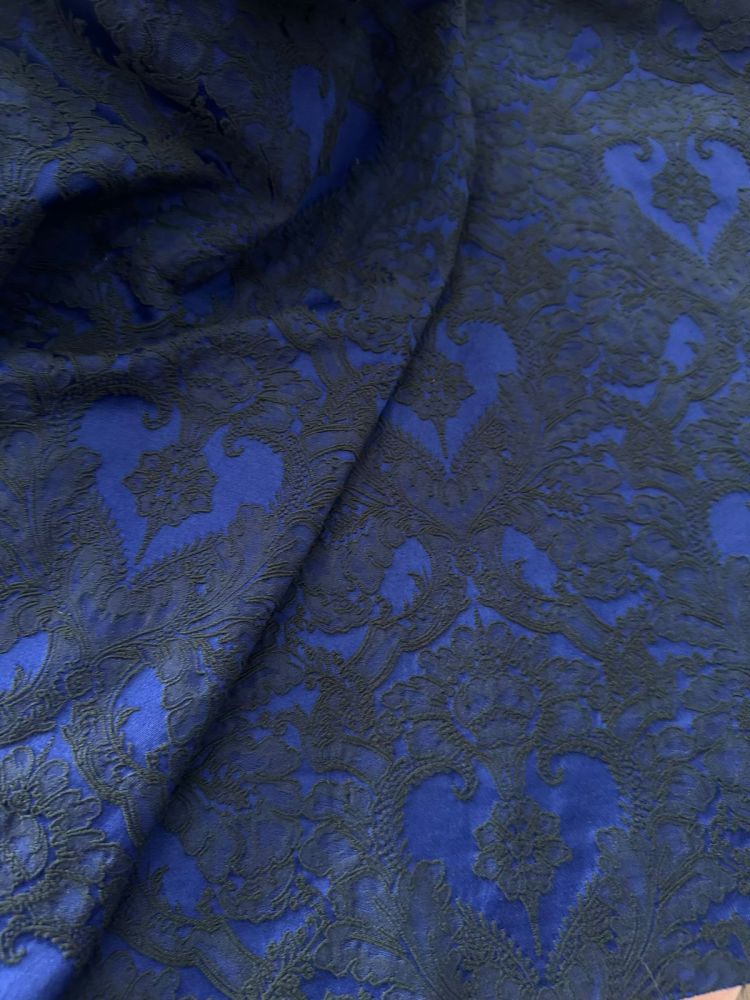Tecido Jacquard Floral Dupla Face Relevo Royal e Preto