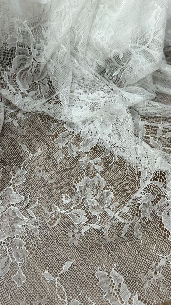A renda chantilly é um tecido francês clássico, conhecido pela sua finura, leveza e delicadeza, com um padrão de desenhos florais, galhos e faixas sobre um fundo de rede planaÉ muito utilizada em vestidos de noiva, peças de festa e lingerie pela sua elegância, toque macio e caimento fluido, mas também pode ser encontrada em peças de decoração e enxoval para adicionar um toque de sofisticação.