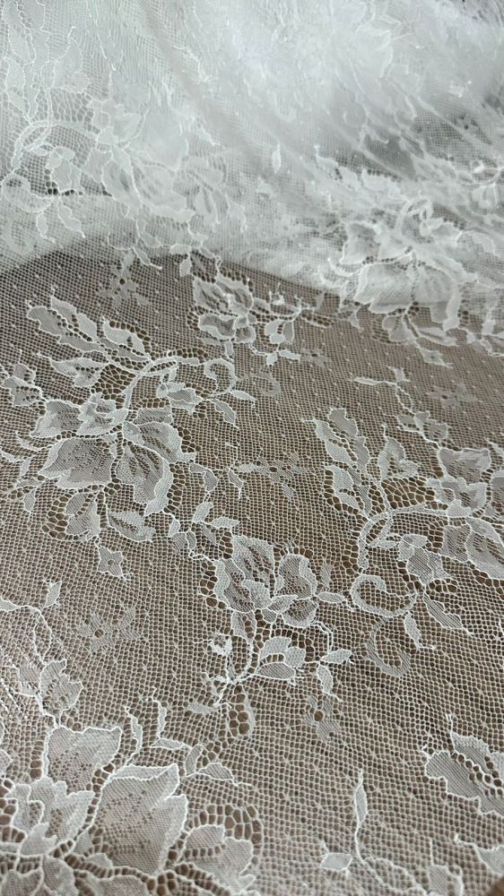 A renda chantilly é um tecido francês clássico, conhecido pela sua finura, leveza e delicadeza, com um padrão de desenhos florais, galhos e faixas sobre um fundo de rede planaÉ muito utilizada em vestidos de noiva, peças de festa e lingerie pela sua elegância, toque macio e caimento fluido, mas também pode ser encontrada em peças de decoração e enxoval para adicionar um toque de sofisticação.