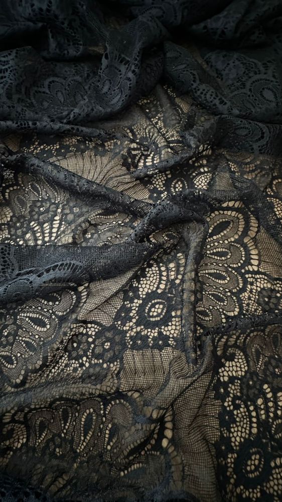 Tecido Renda chantilly preta II • Conexão Tecidos