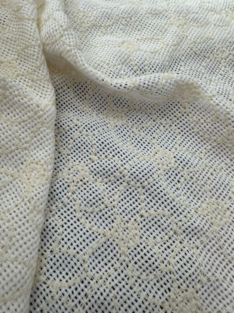 Tecido Tela Bordada Natural Off White com toque leve e caimento fluido, ideal para confecção de vestidos, blusas e peças com movimento elegante. Combina conforto, durabilidade e acabamento sofisticado, perfeito para moda feminina e looks refinados.