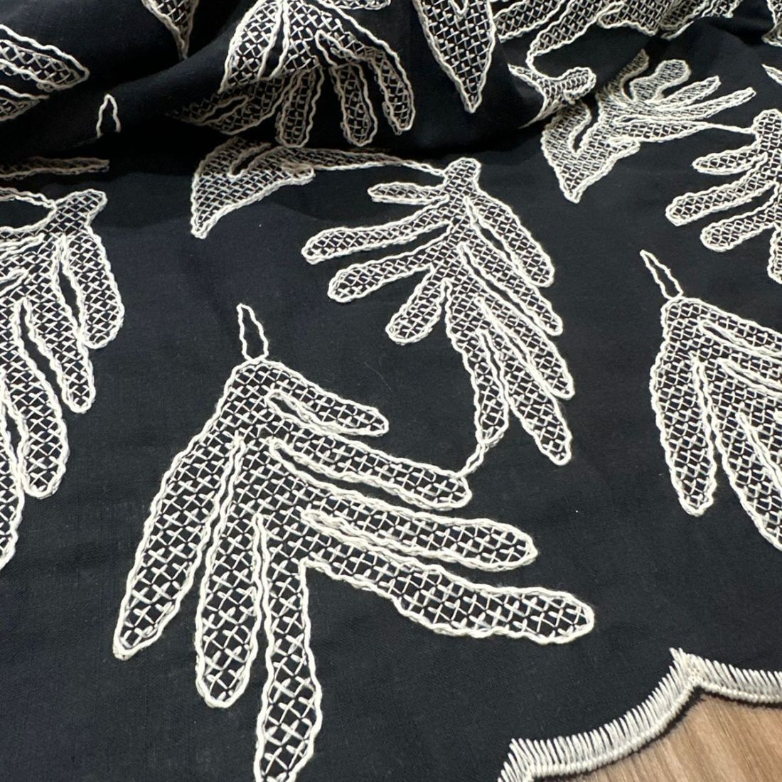 Tecido Cambraia De Algodão Bordada P&B • Conexão Tecidos