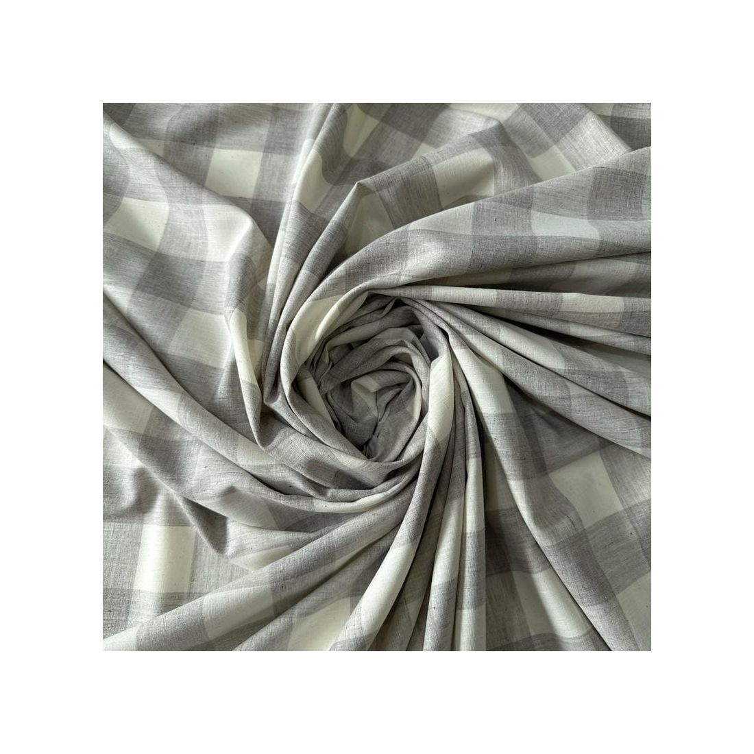 O Tecido Cambraia De Algodão Xadrez Cinza Claro é um tecido que combina fibras de viscose com linho, resultando em um material leve, confortável e com aparência natural. Possui textura levemente rústica e visual sofisticado, sendo muito utilizado na moda contemporânea por unir frescor e elegância.