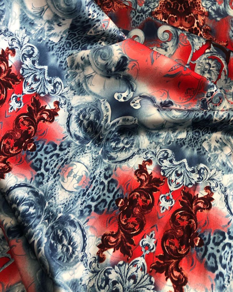 Adicione sofisticação às suas criações com o brilho natural e o caimento impecável do Tecido Cetim de Seda Estampado Indiana Abs.