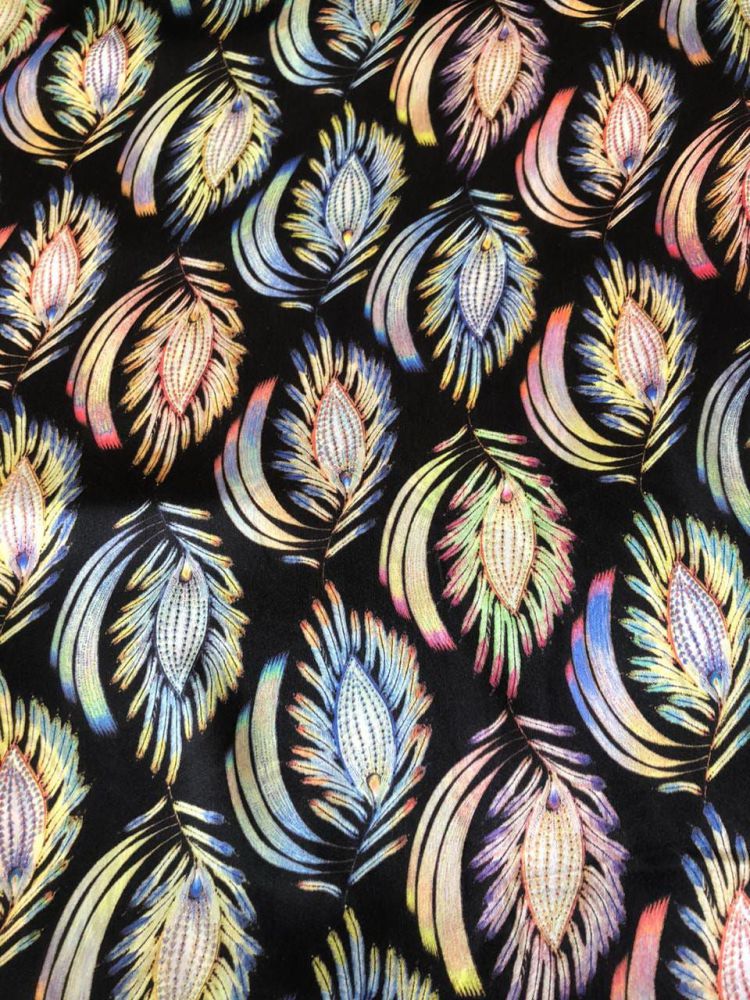 Adicione sofisticação às suas criações com o brilho natural e o caimento impecável do Tecido Cetim de Seda Estampado Indy.