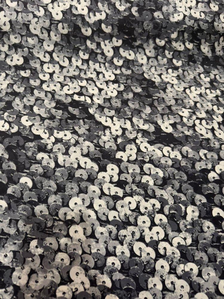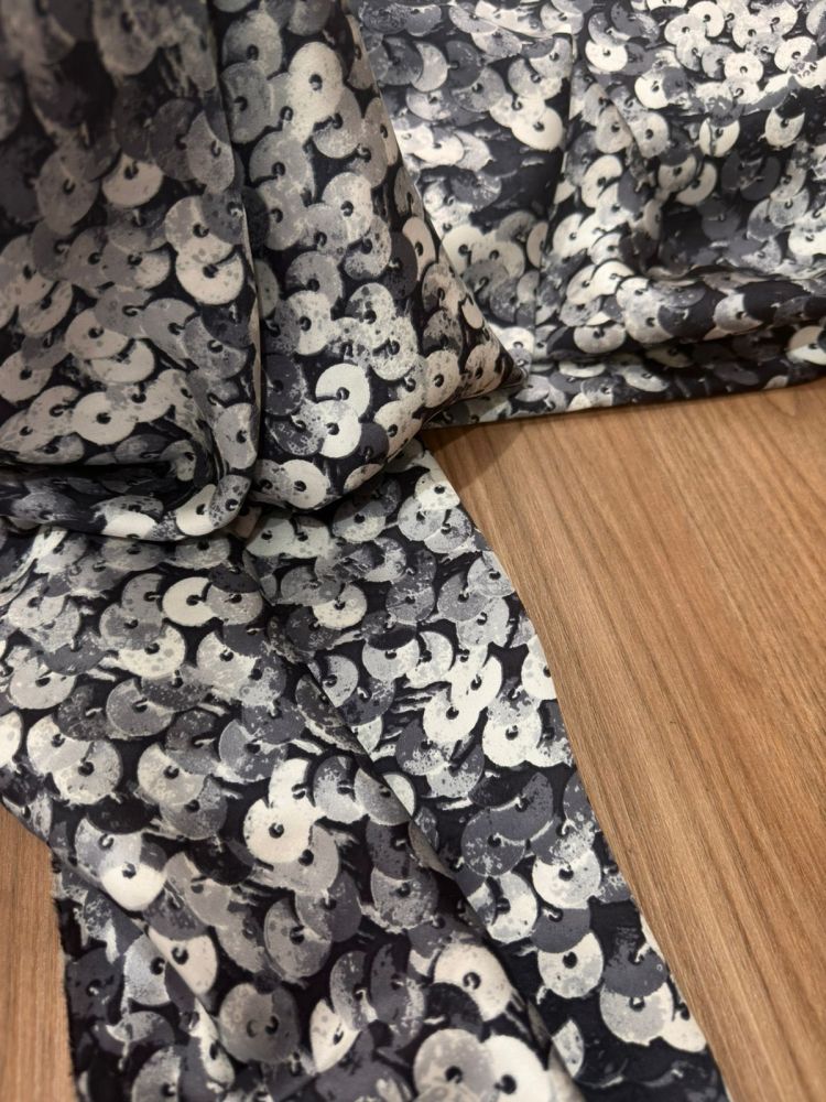 Tecido Cetim de Seda Estampado Paetê 3D Black – Brilho Sofisticado e Toque Suave