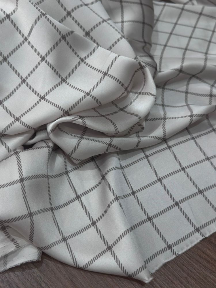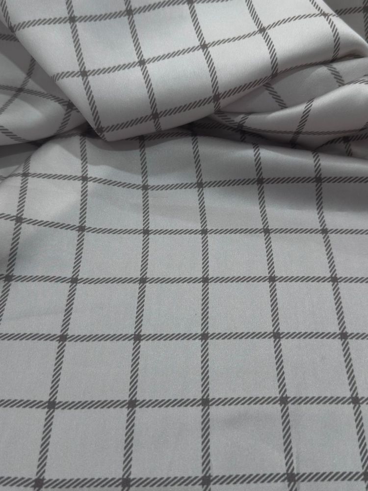 Adicione sofisticação às suas criações com o brilho natural e o caimento impecável do Tecido Cetim de Seda Estampado Xadrez Belga.