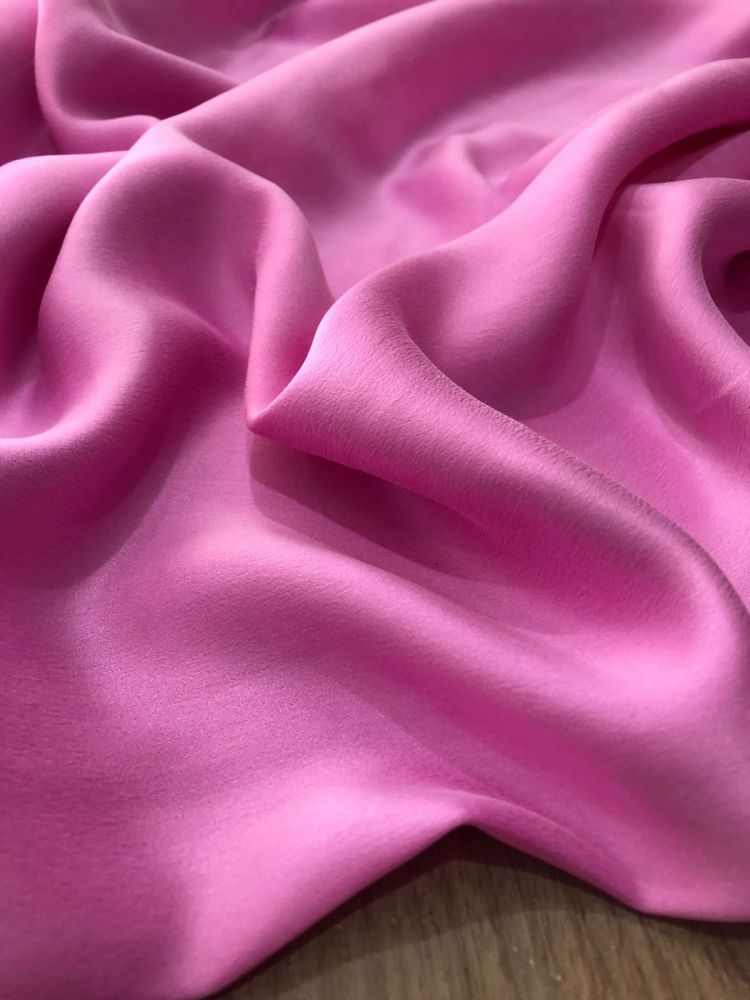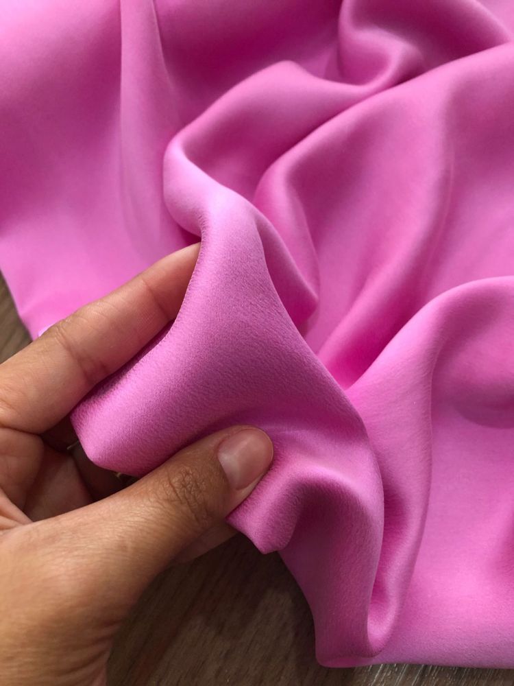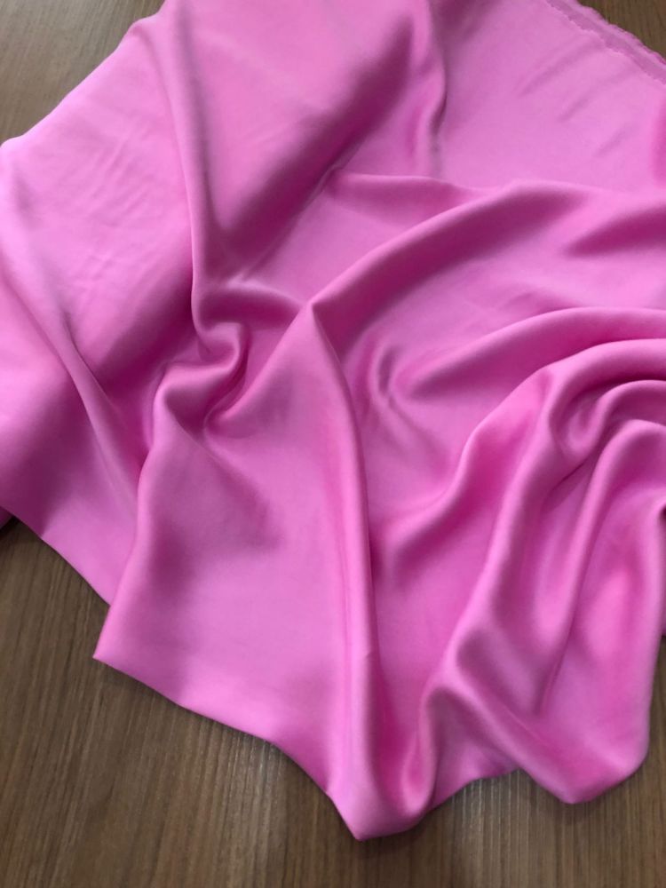 Tecido Cetim de Seda Liso Estonado Rosa com superfície lisa, brilho elegante e caimento fluido. Ideal para vestidos de festa, blusas refinadas e peças que exigem acabamento luxuoso e toque macio.