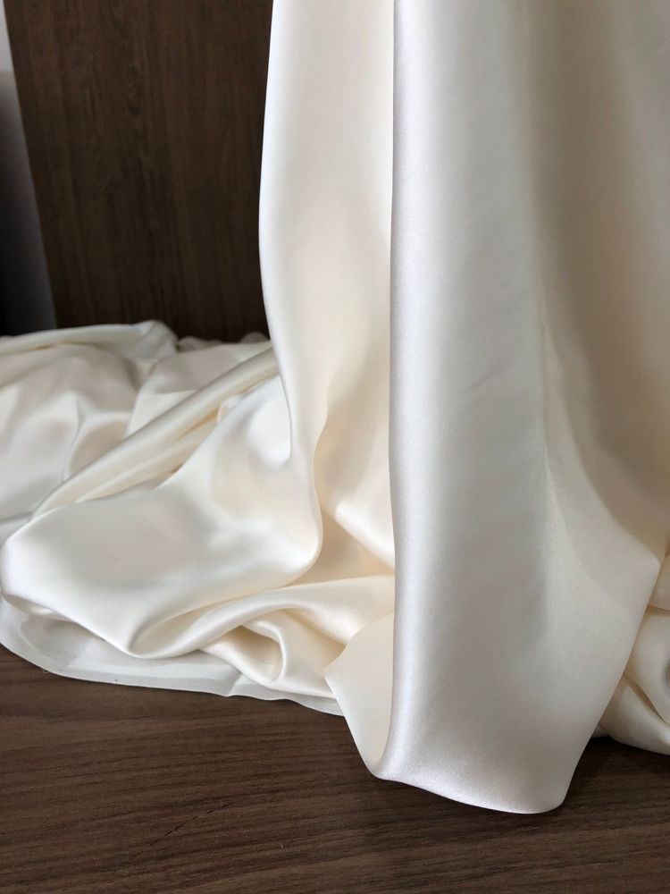Tecido Cetim de Seda Liso Off White – Brilho Sofisticado e Toque Suave