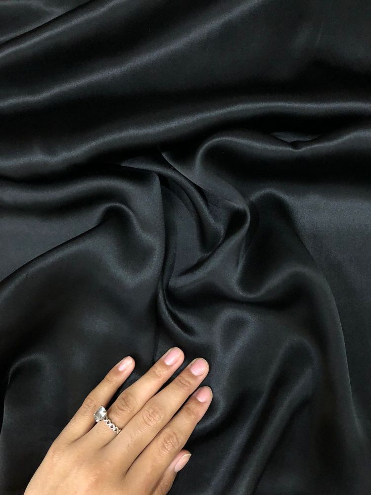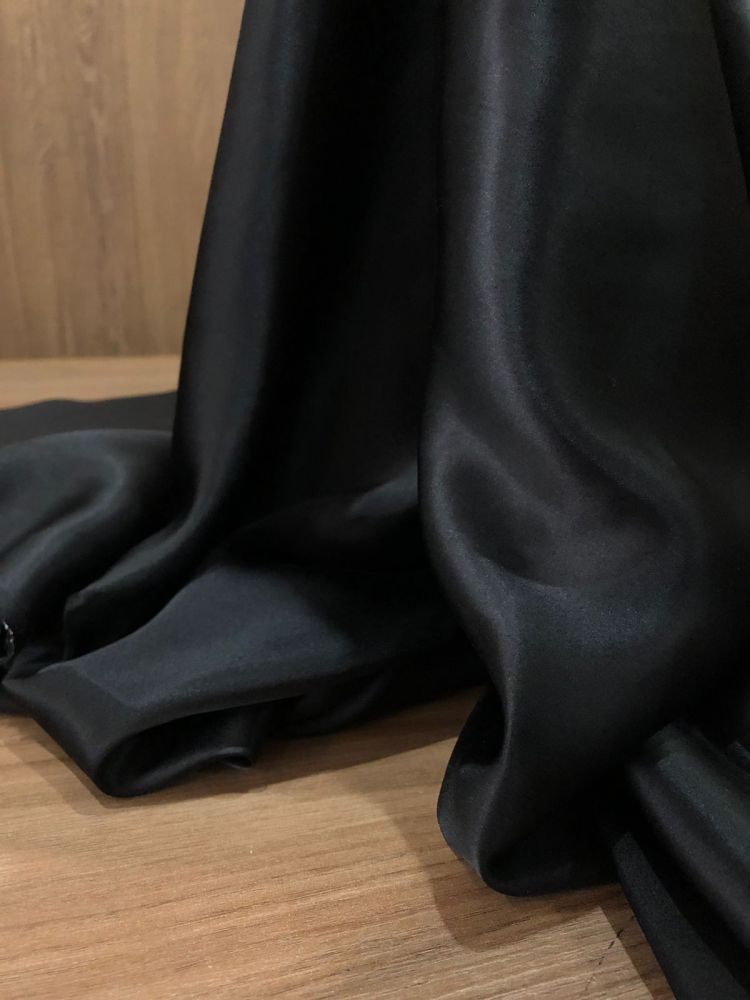 Tecido Cetim de Seda Liso Preto – Brilho Sofisticado e Toque Suave