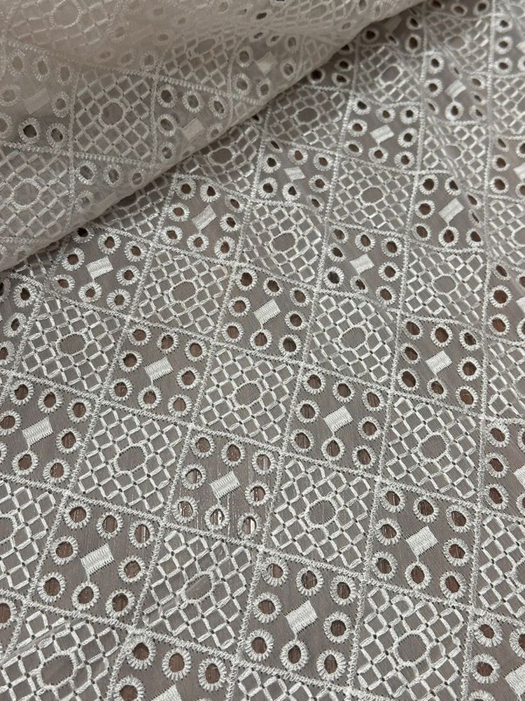 Tecido Chiffon De Seda Bordado Off White – Leveza Extrema e Elegância Natural