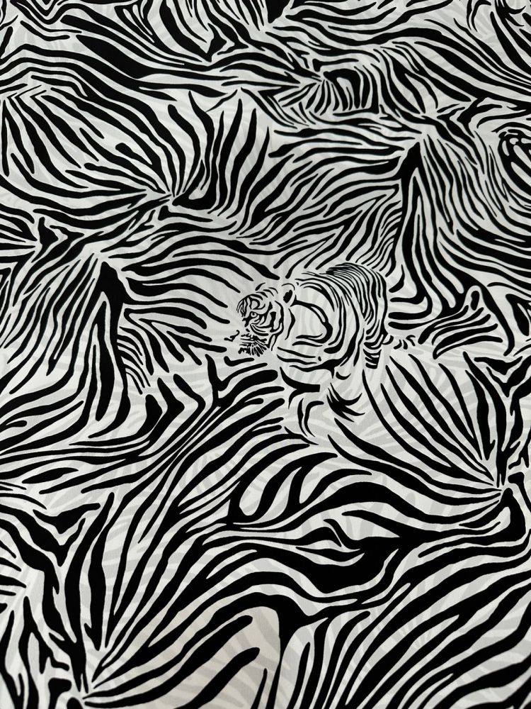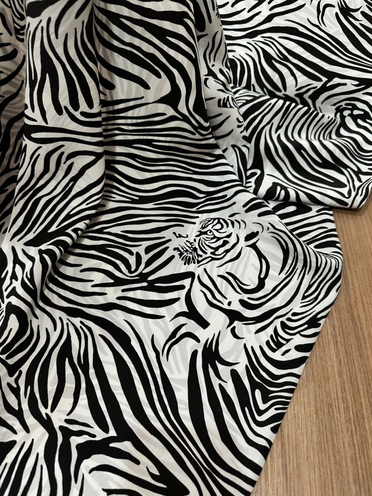 Tecido Crepe De Chine Estampado Black Tiger