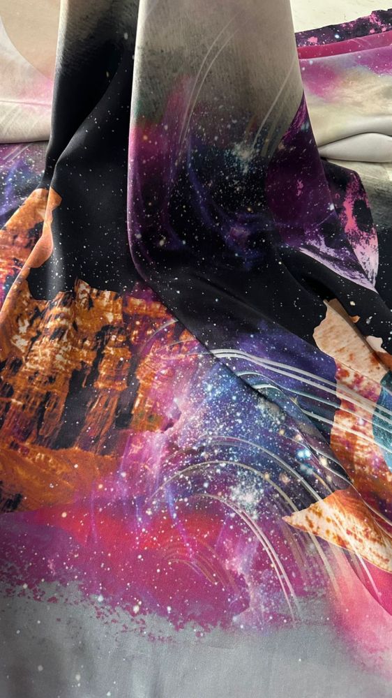 Tecido Crepe de Chine Estampado Galaxy