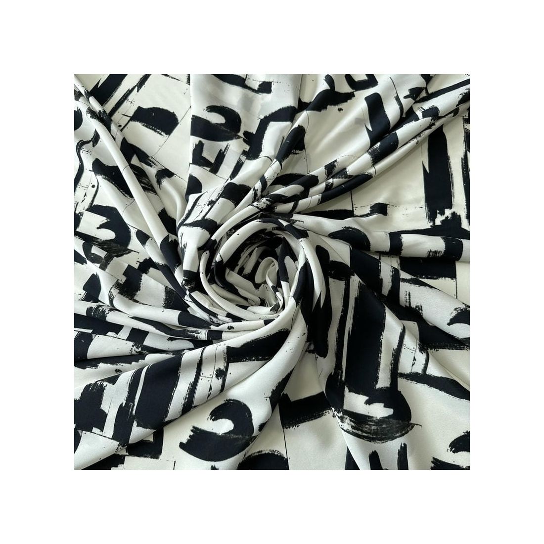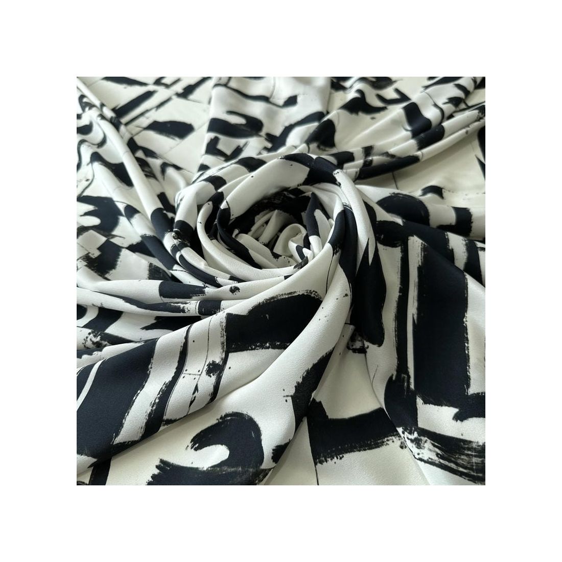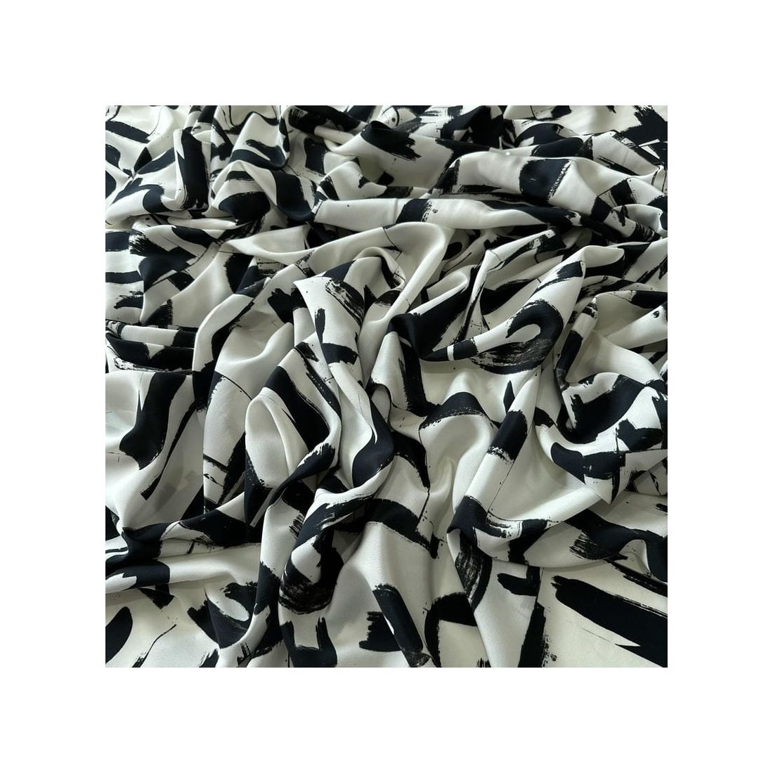 O Tecido Crepe de Chine Estampado Arte Contemporânea é um tecido leve, tradicionalmente feito de seda com fios altamente torcidos, resultando em uma superfície levemente texturizada e caimento fluido. É conhecido por sua aparência refinada e toque suave, adequado tanto para peças sofisticadas quanto para looks casuais elegantes.