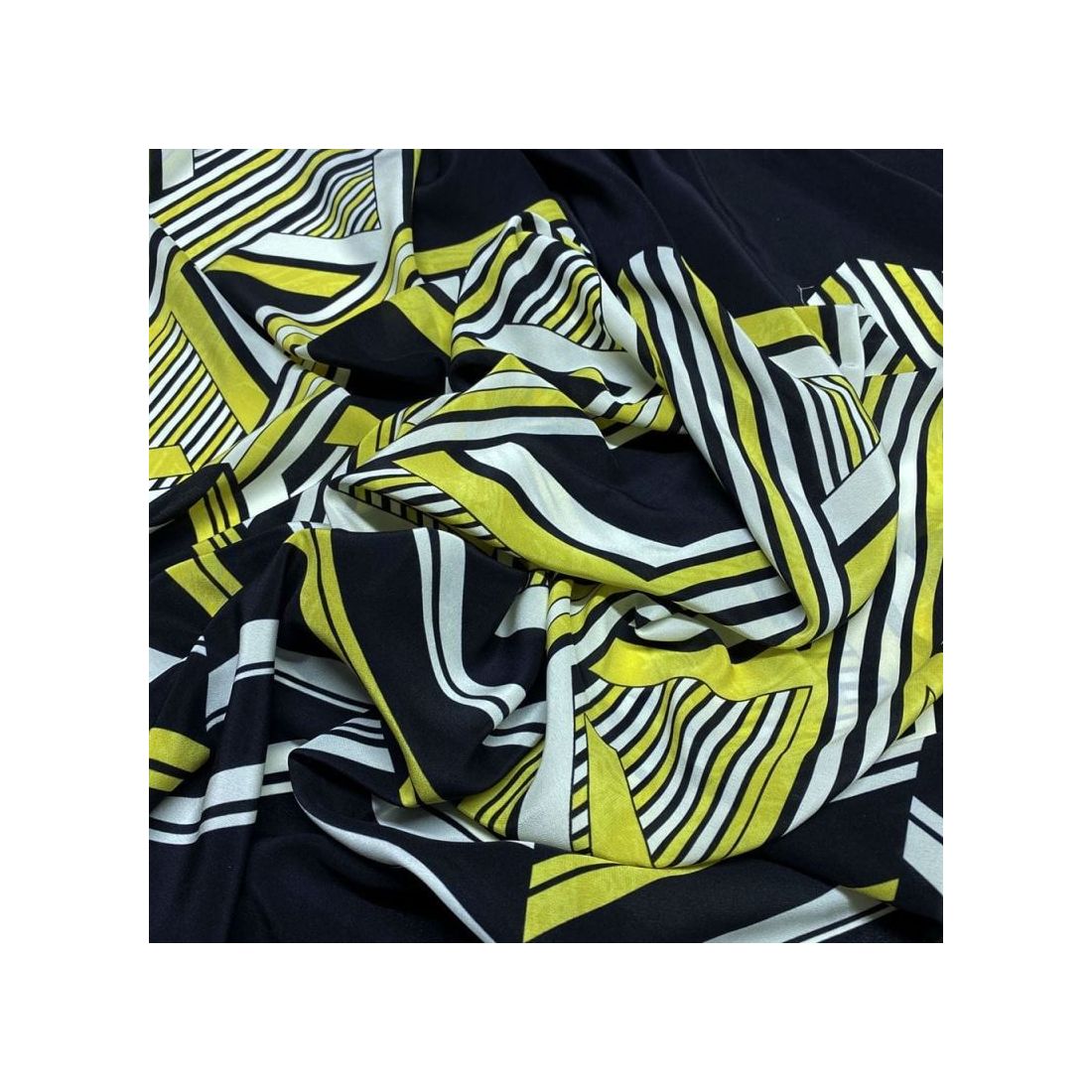 Tecido Crepe de Chine Estampado Chevron Amarelo • Conexão Tecidos