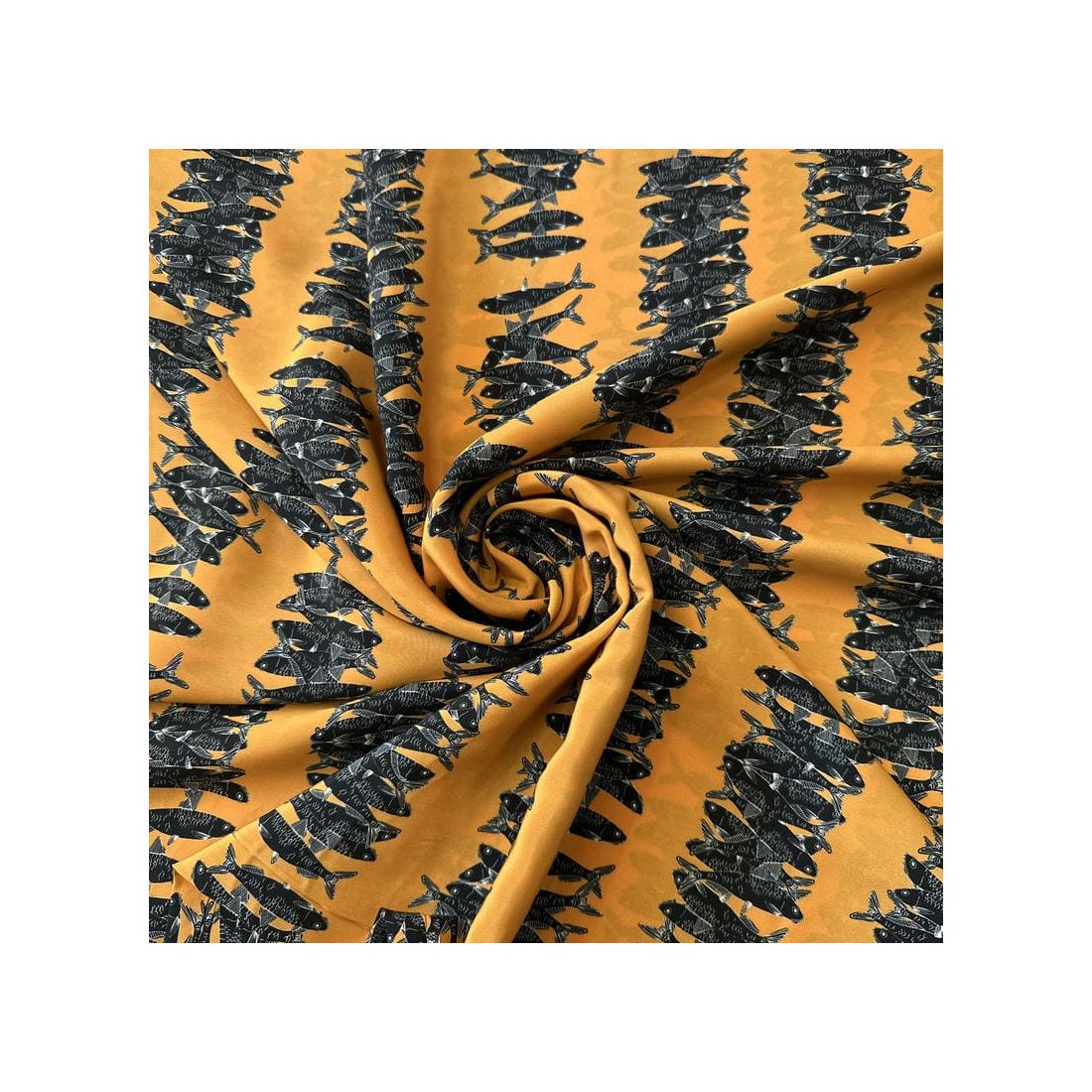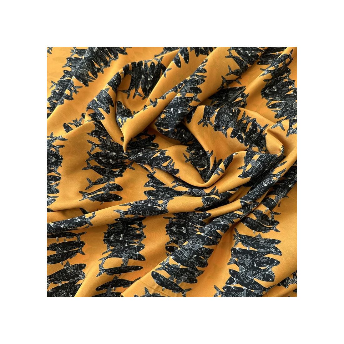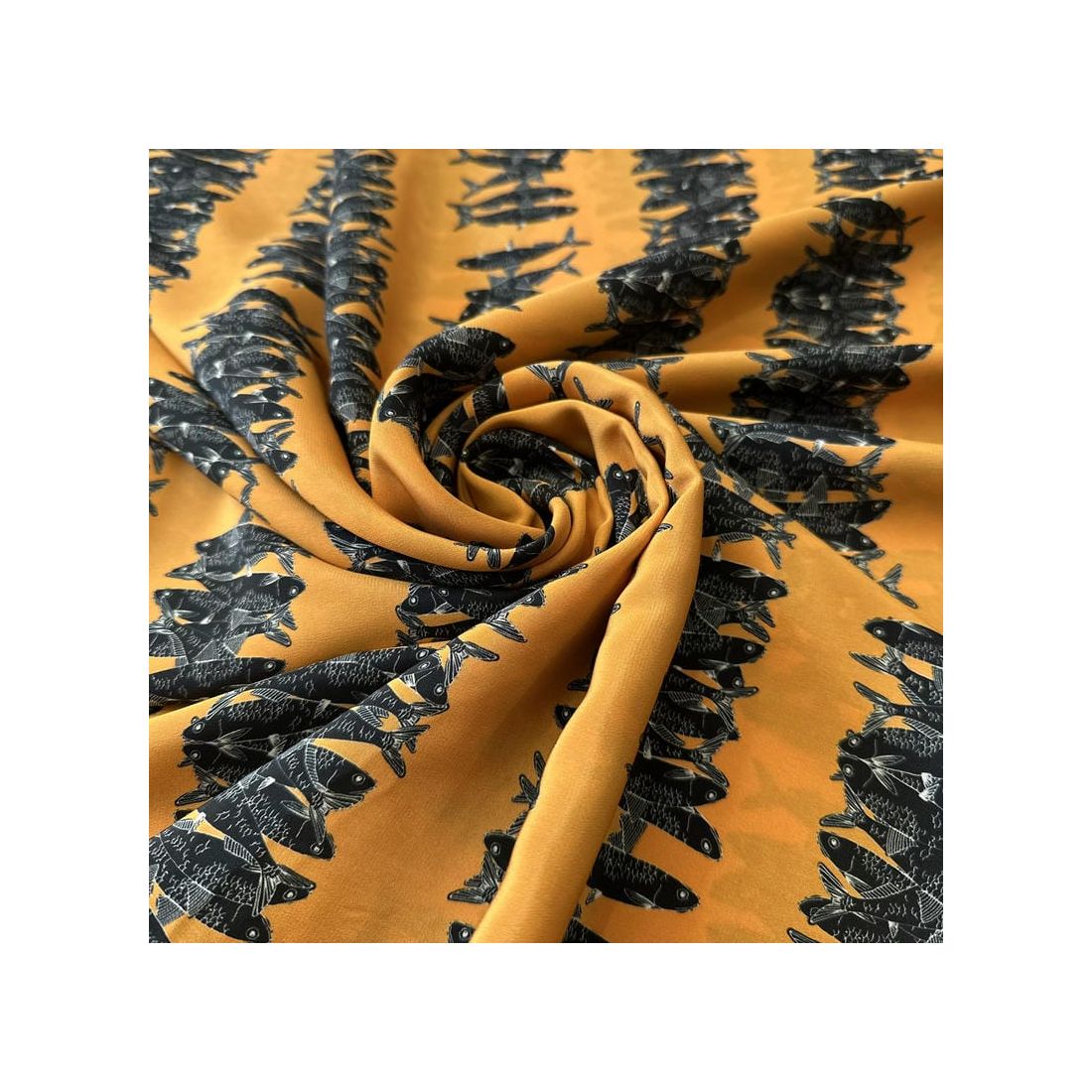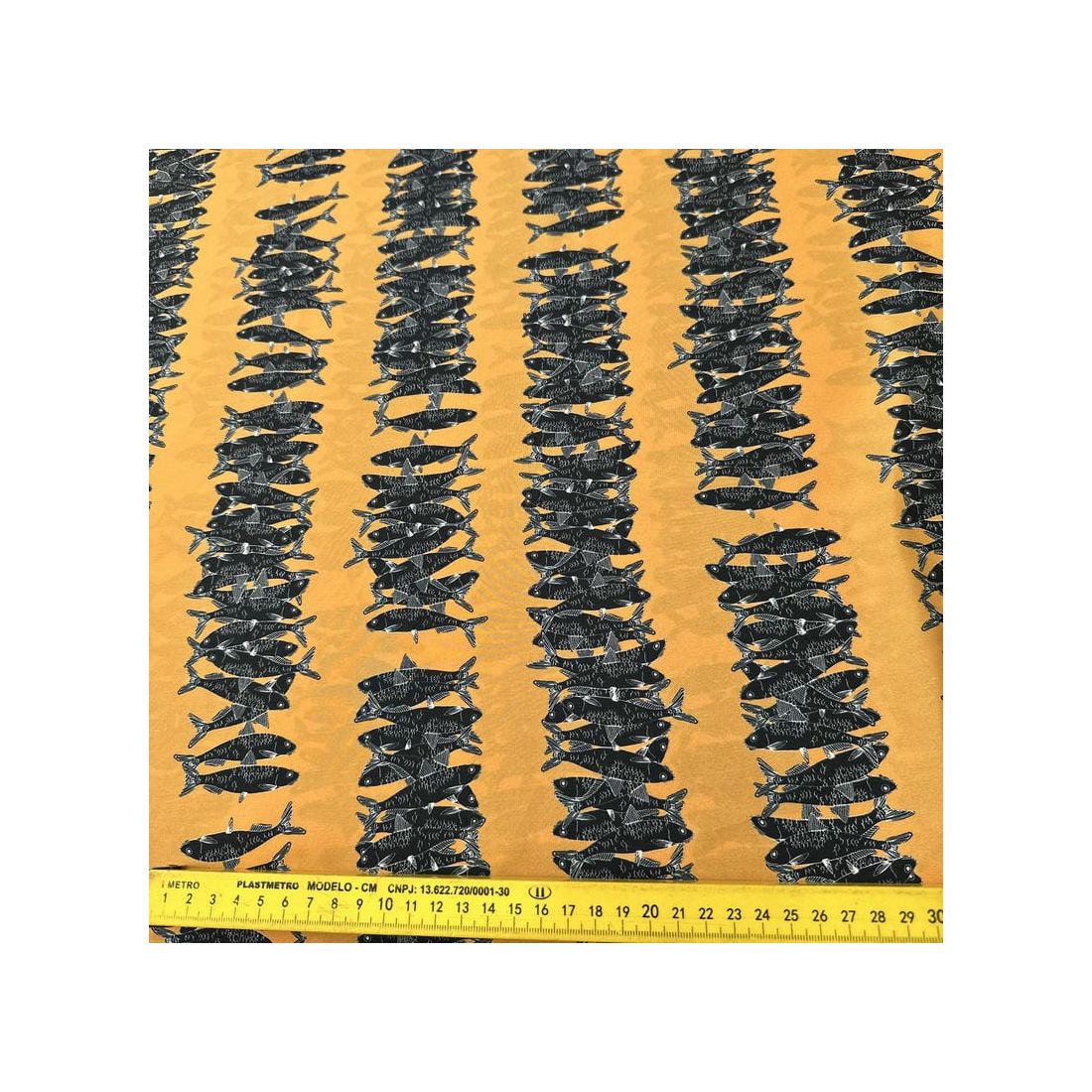 Tecido Crepe de Chine Estampado Fish Line • Conexão Tecidos