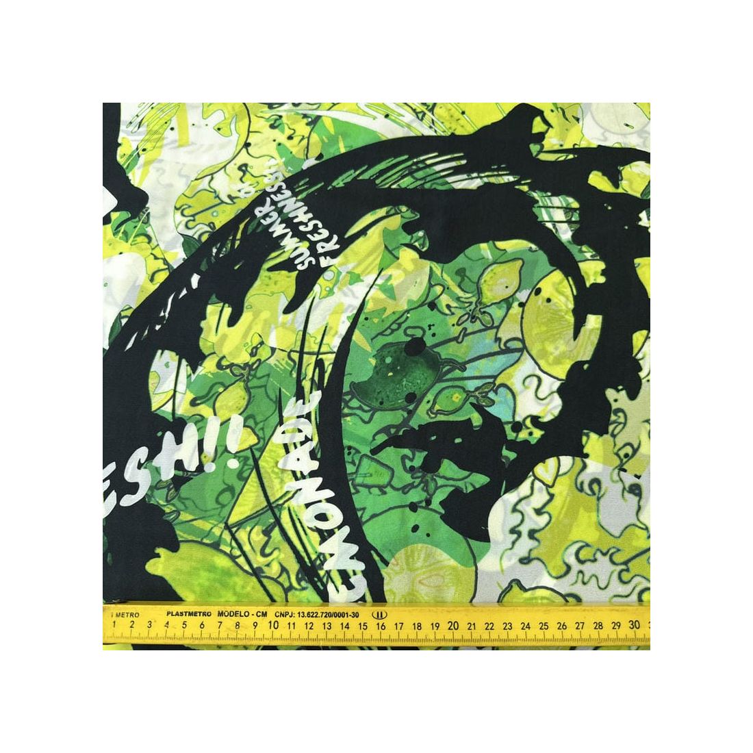 Tecido Crepe de Chine Estampado Green Lemonade • Conexão Tecidos