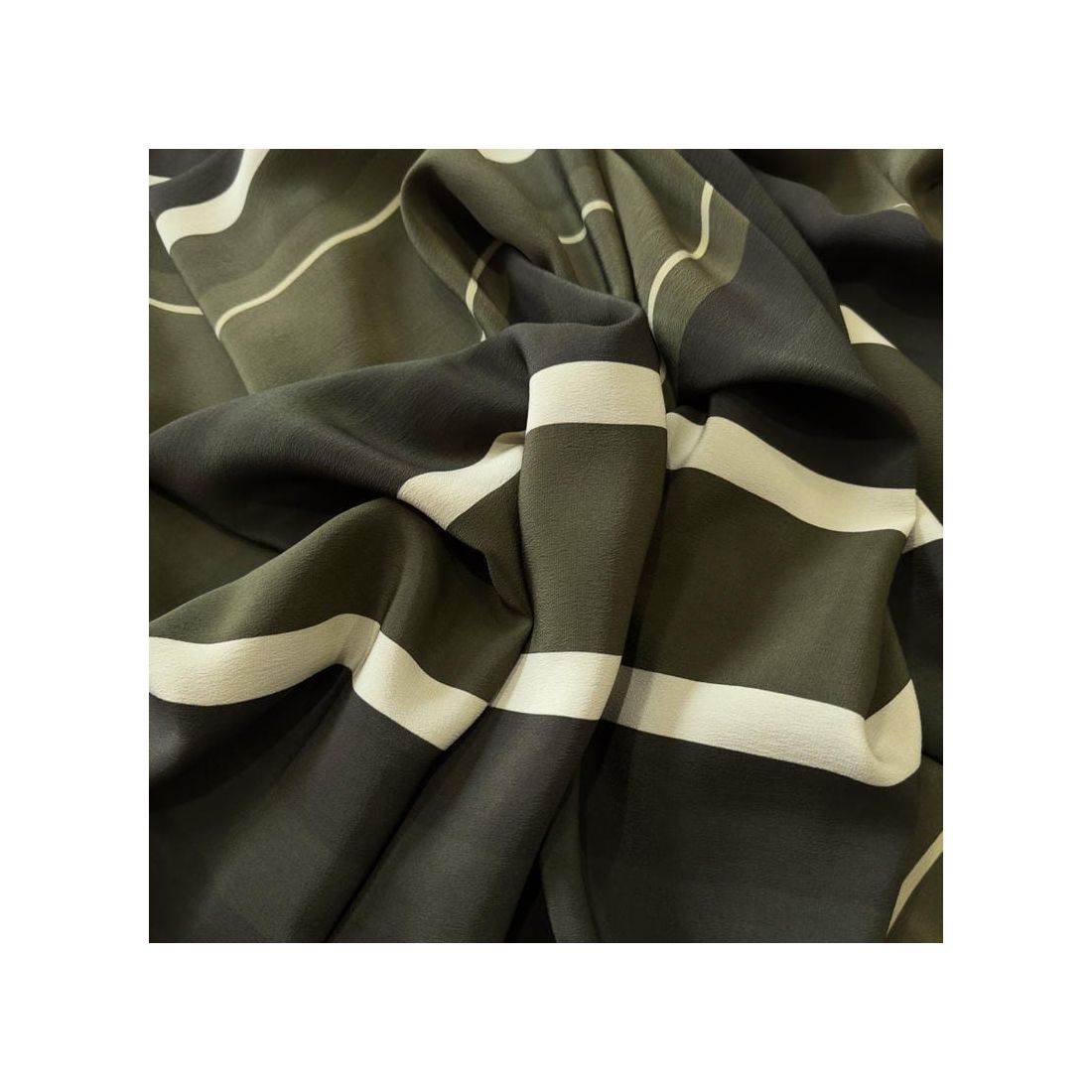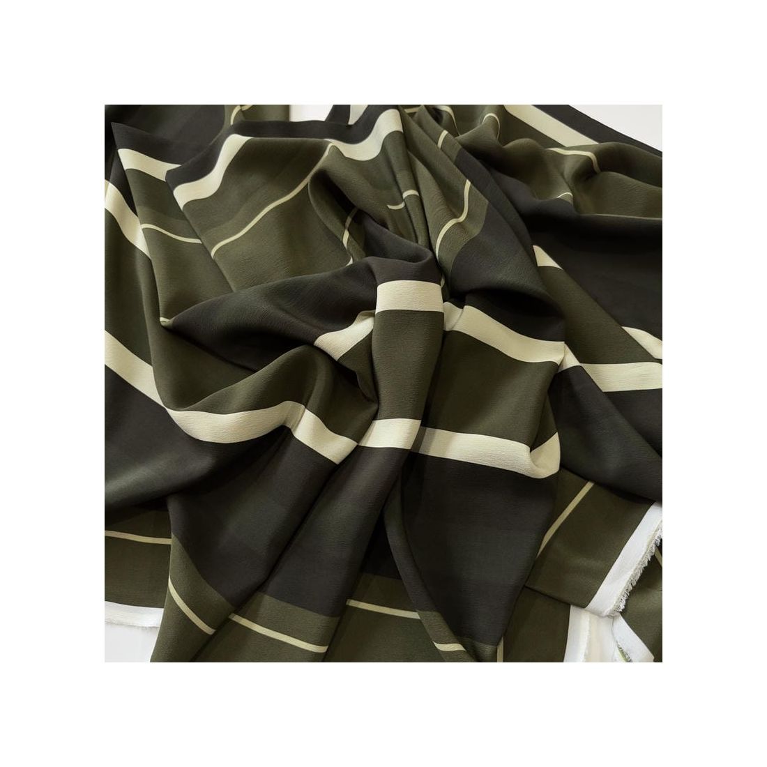Tecido Crepe de Chine Estampado Green Lines • Conexão Tecidos