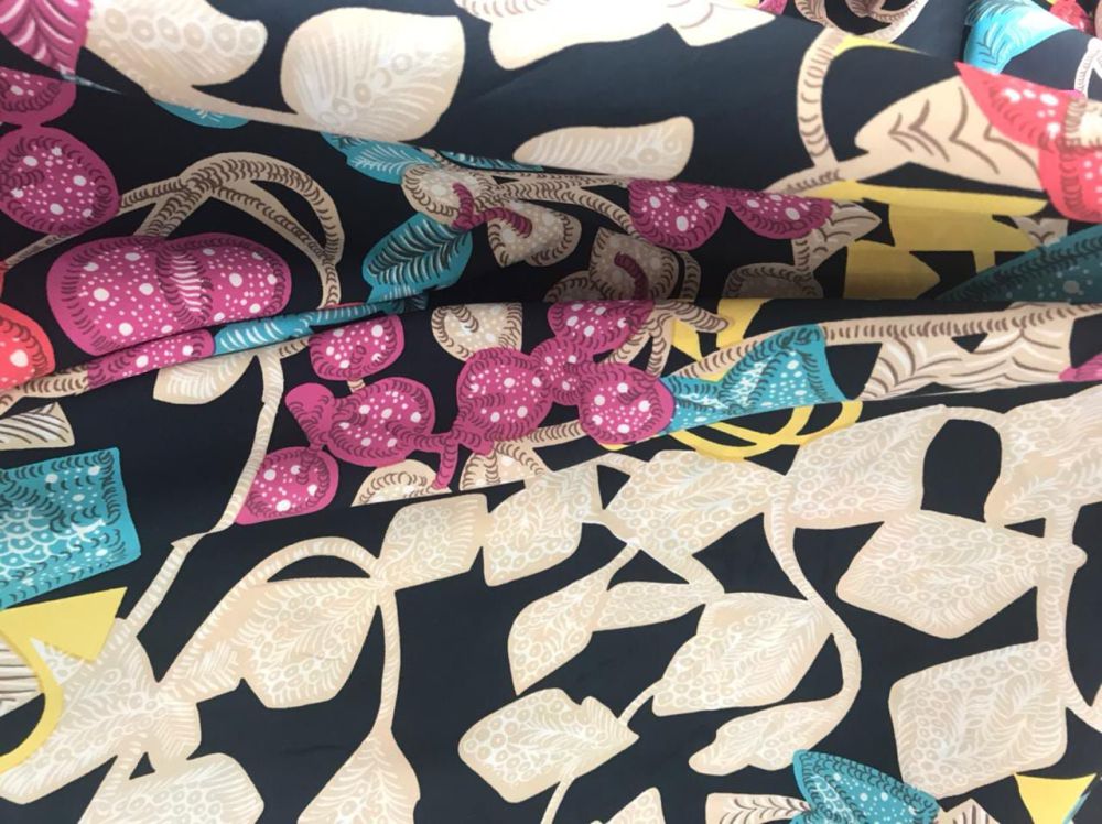 Tecido Crepe de Chine Estampado Jardim Exótico Nocturne – Leve, Fluido e Elegante