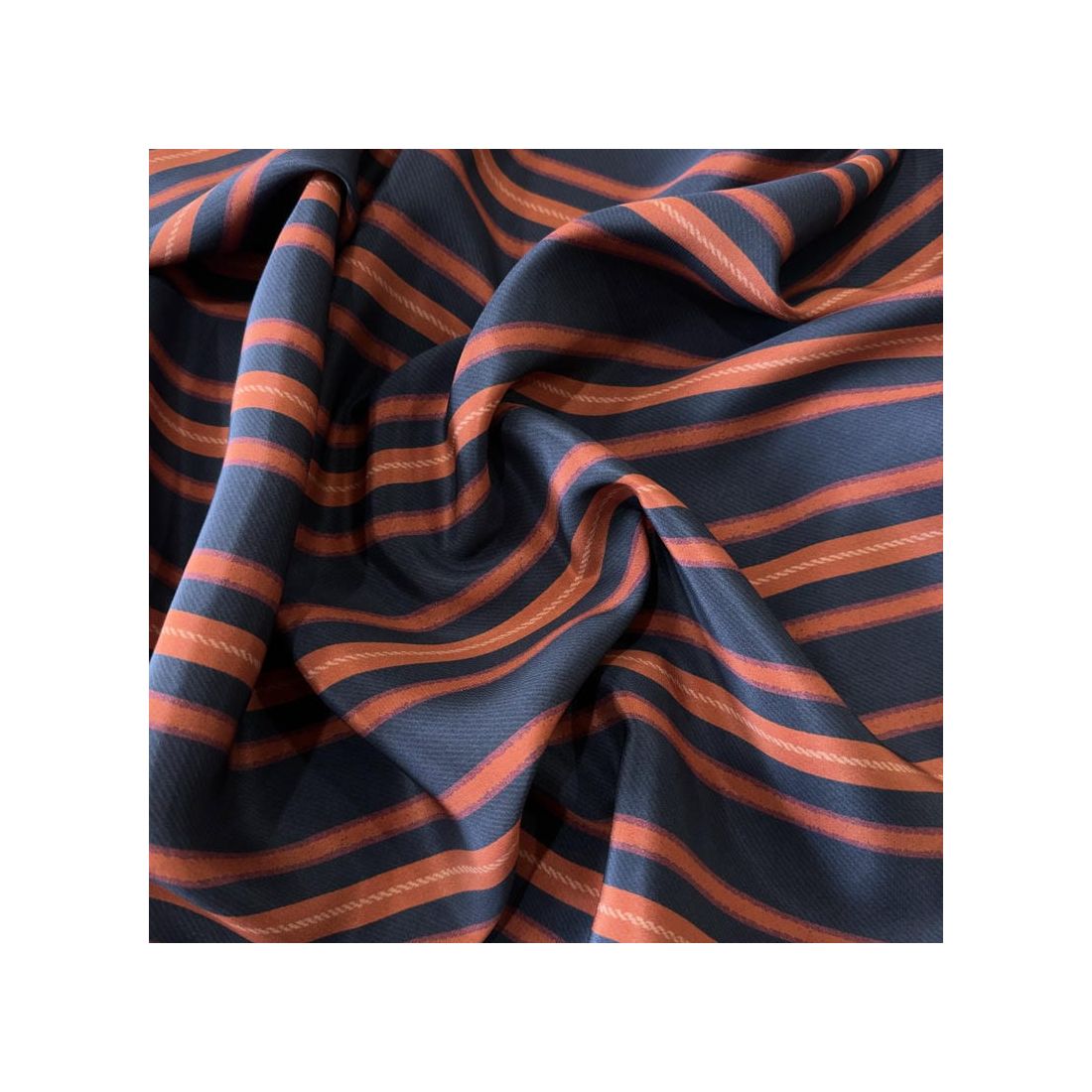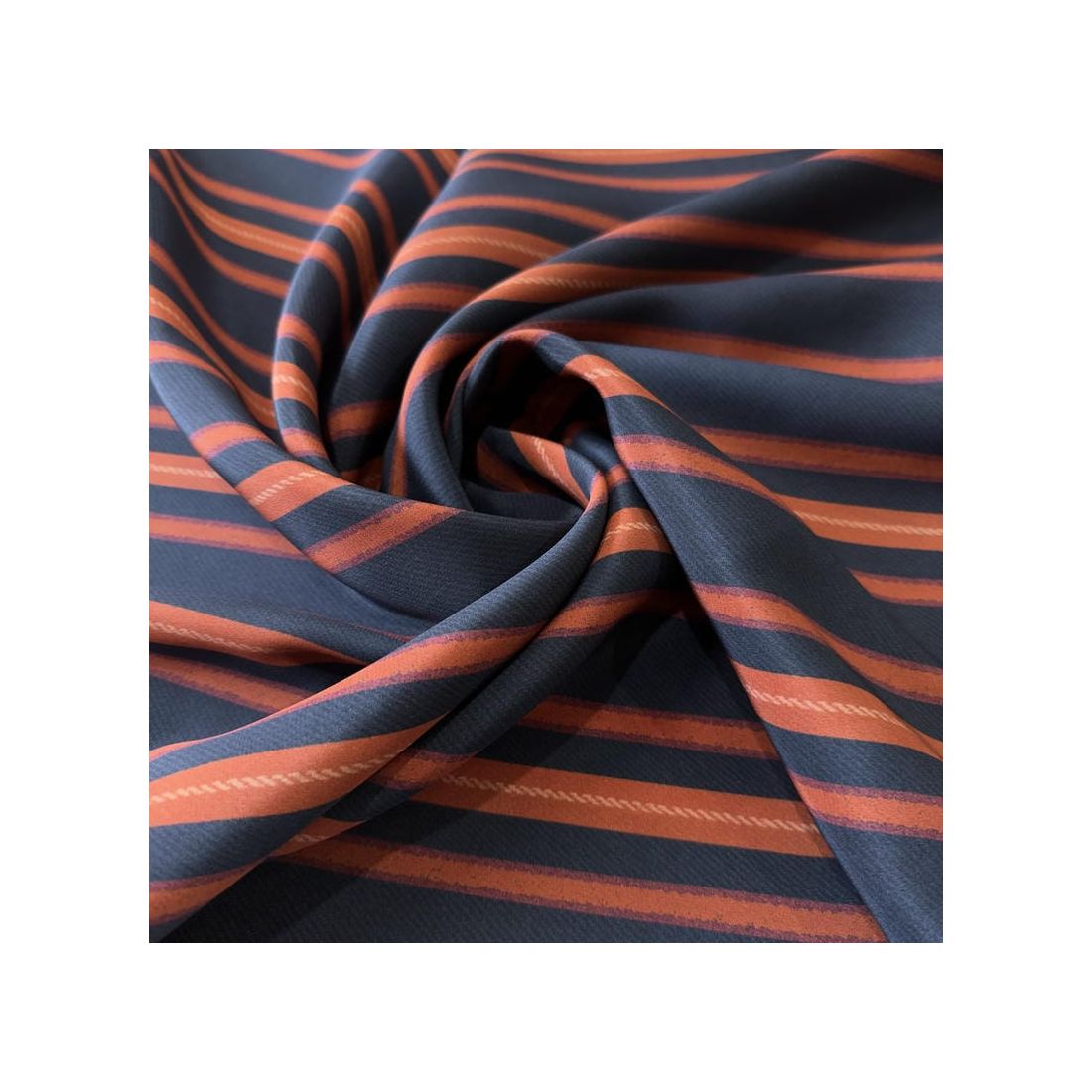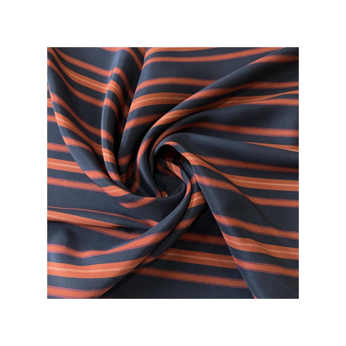 Tecido Crepe de Chine Estampado Stripe Navy Elegance • Conexão Tecidos