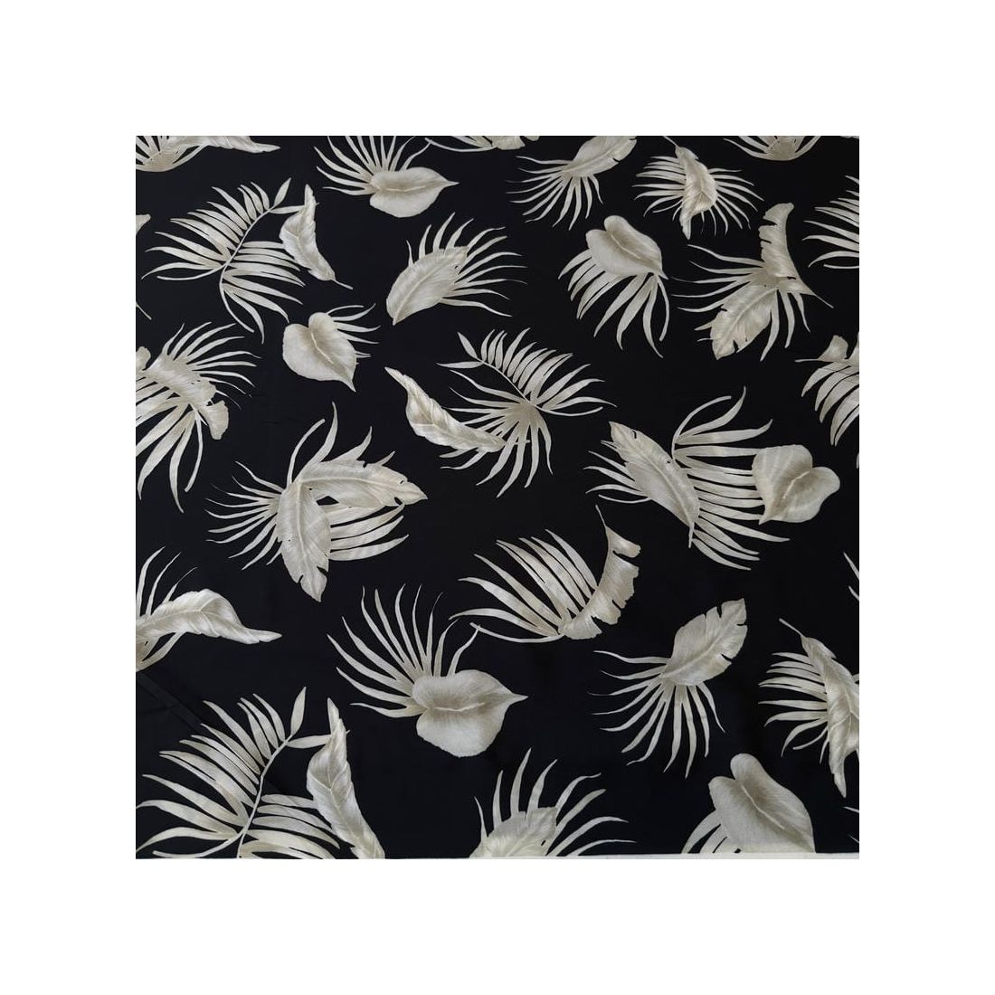 Tecido Crepe de Chine Estampado Tropical Leaves Noir