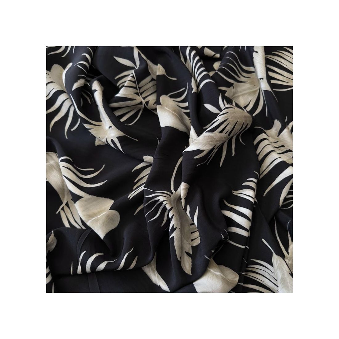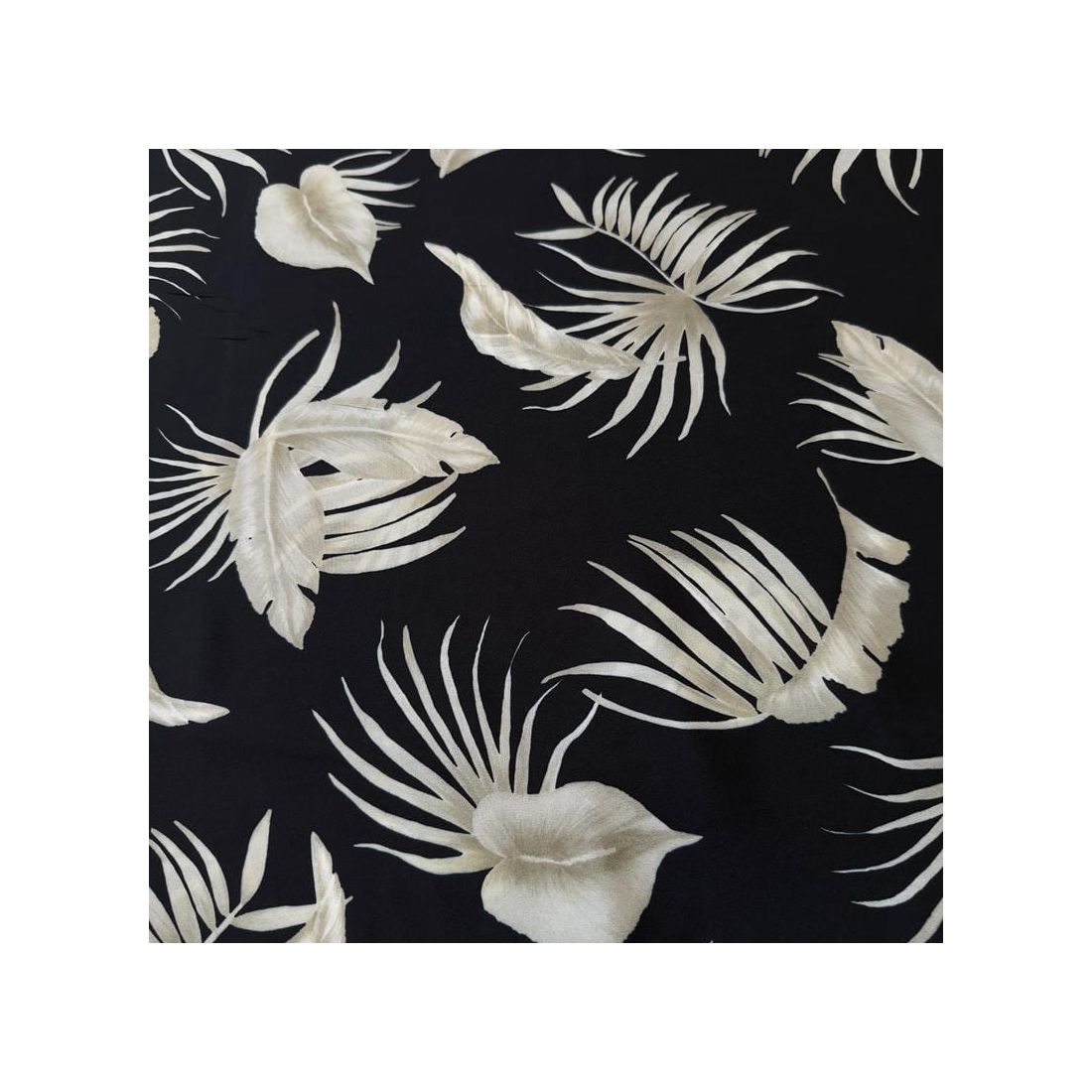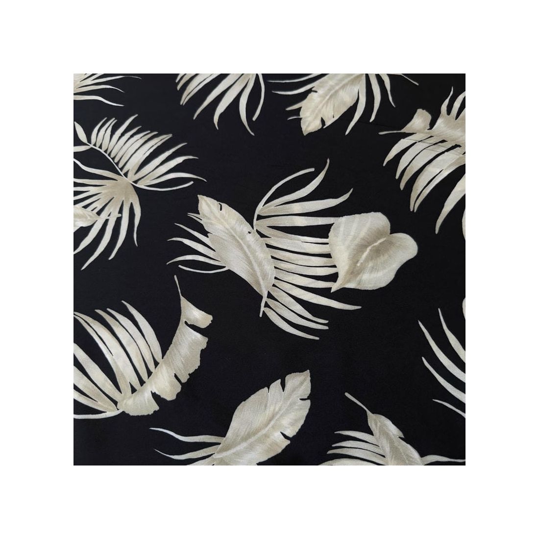 Tecido Crepe de Chine Estampado Tropical Leaves Noir • Conexão Tecidos