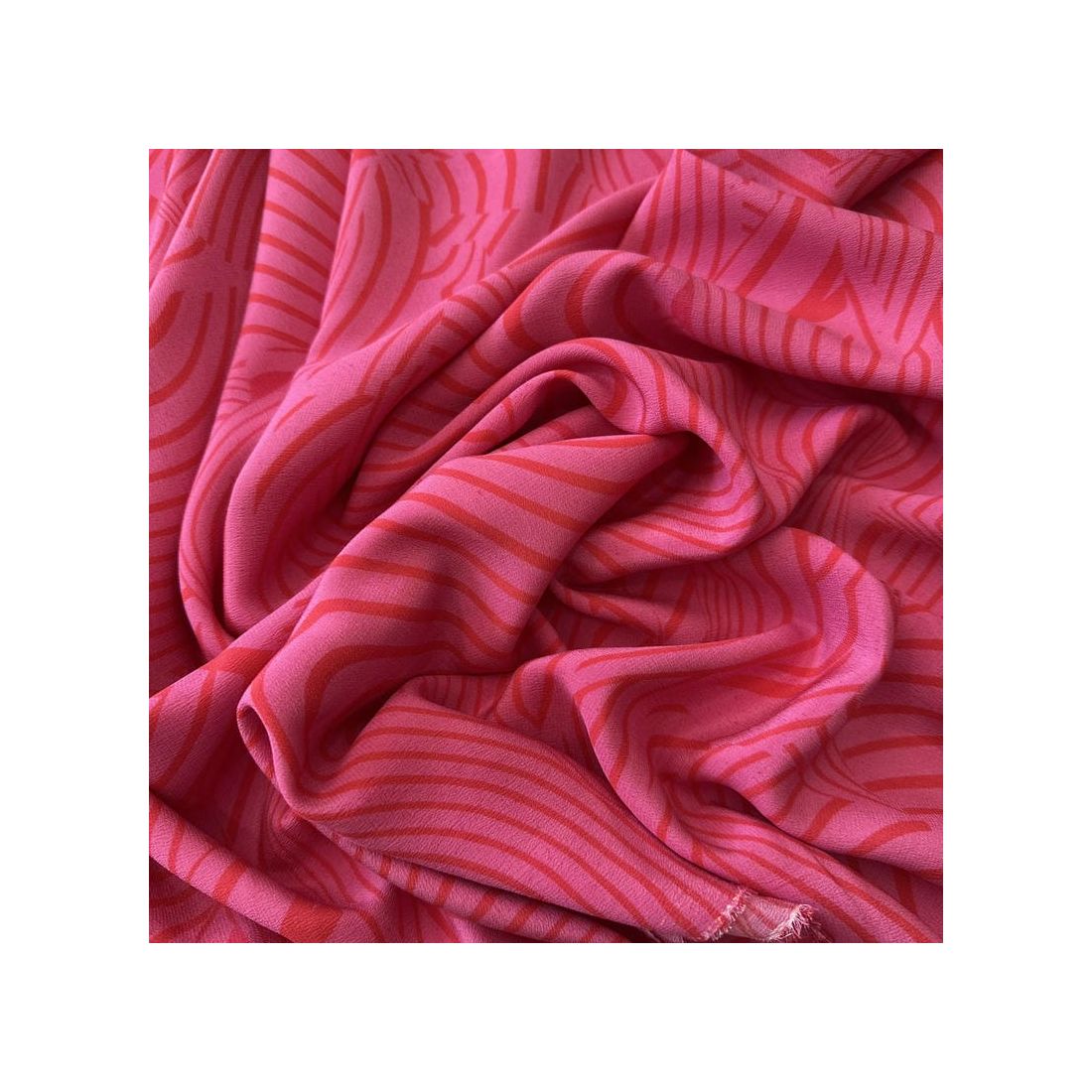 Tecido Crepe de Chine Estampado Waves Pink • Conexão Tecidos