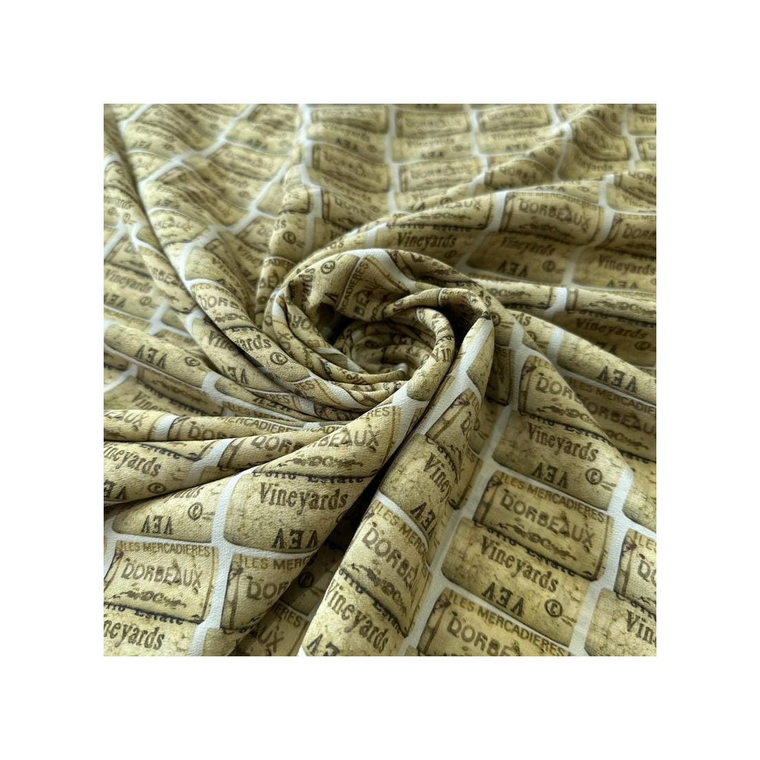 Tecido Crepe de Chine Estampado Wine Cork • Conexão Tecidos