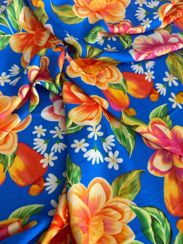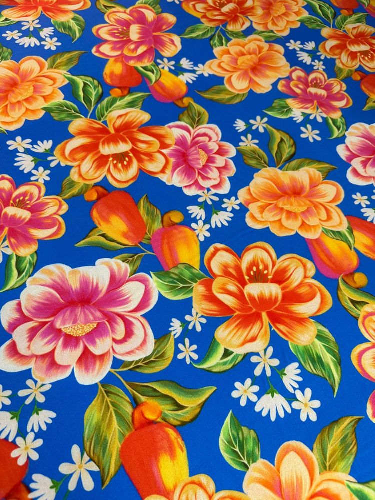 Tecido Crepe De Viscose Estampada Floral Azul