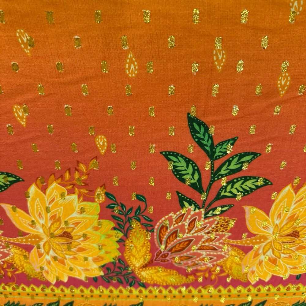 O Tecido Crepe De Viscose Estampado African Orange é um tecido que combina a textura característica do crepe com o conforto térmico da viscose. Possui toque macio, boa respirabilidade e caimento fluido, sendo amplamente utilizado na confecção de peças leves e confortáveis.