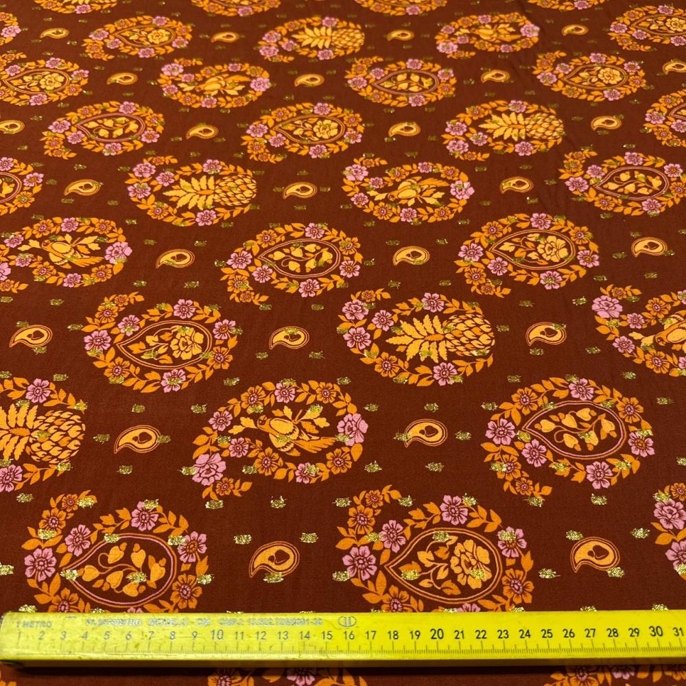Tecido Viscose Estampada Boho Foil