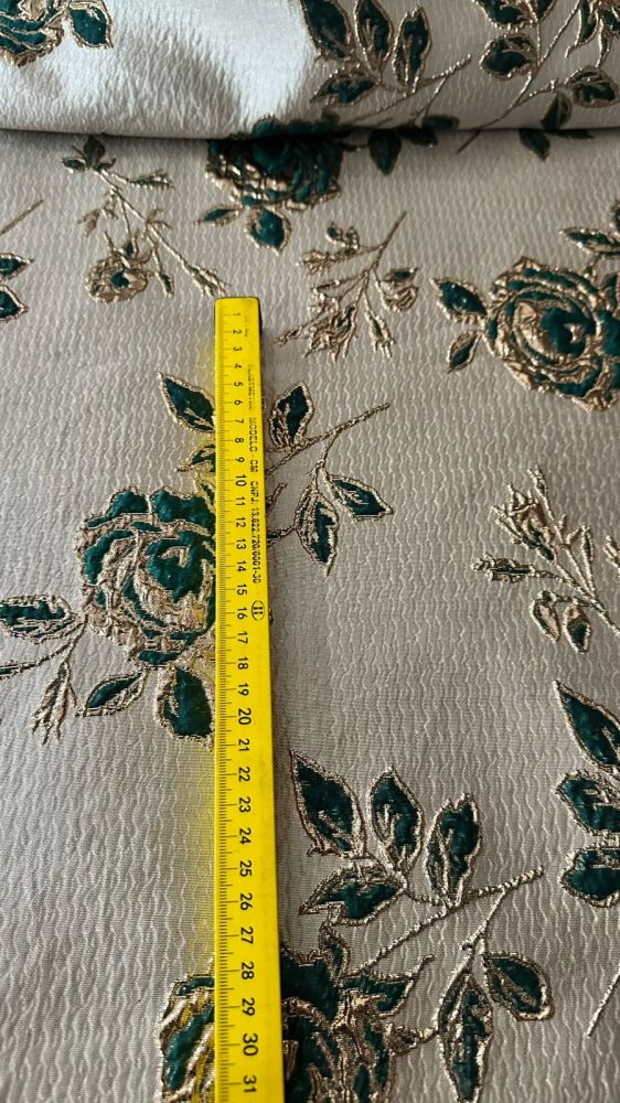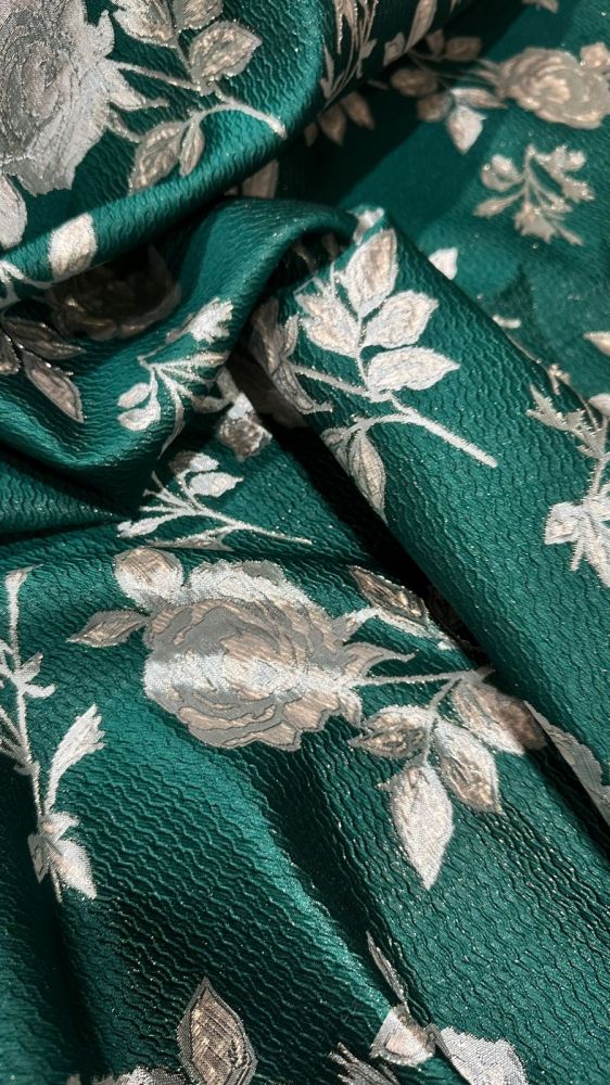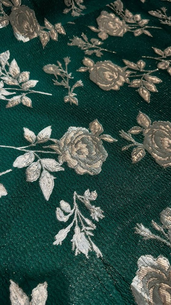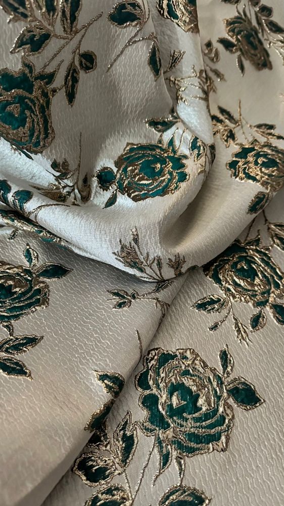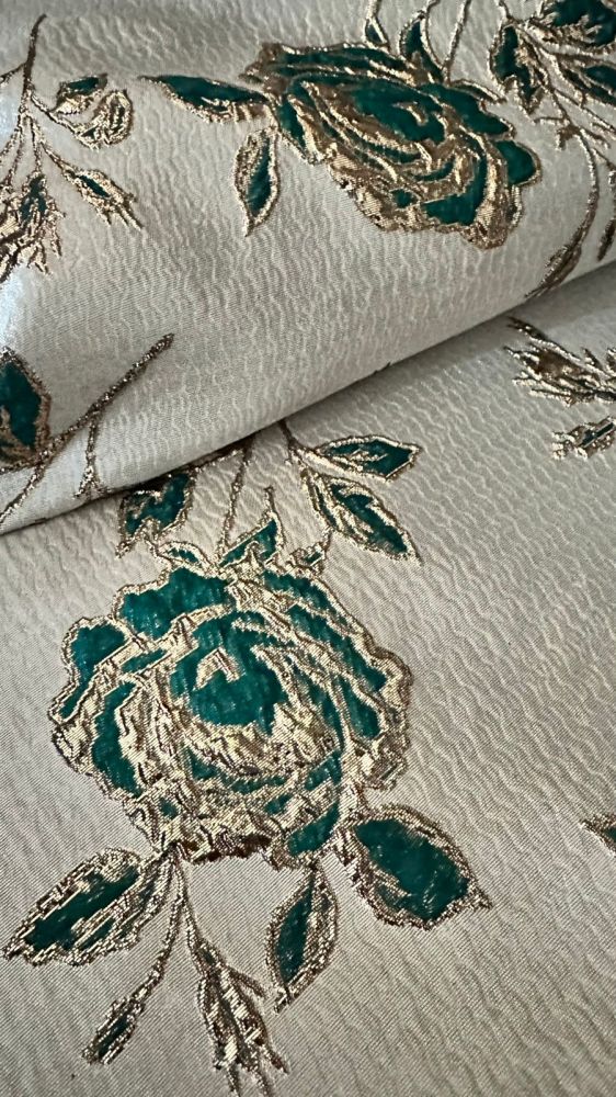 Tecido Jacquard Brocado Dupla Face Green & Rose