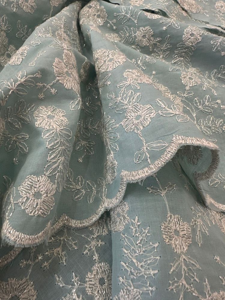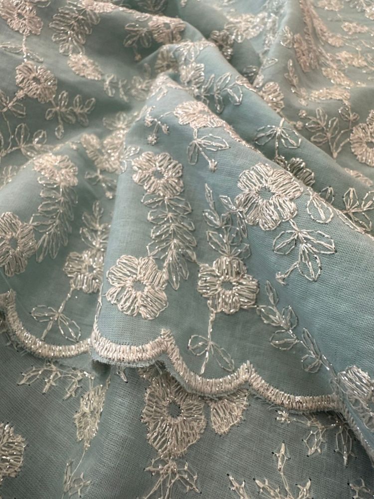 Tecido Lese De Algodão Verde Água Bicos