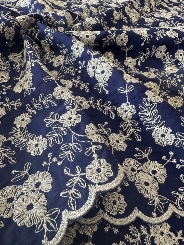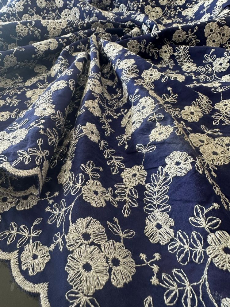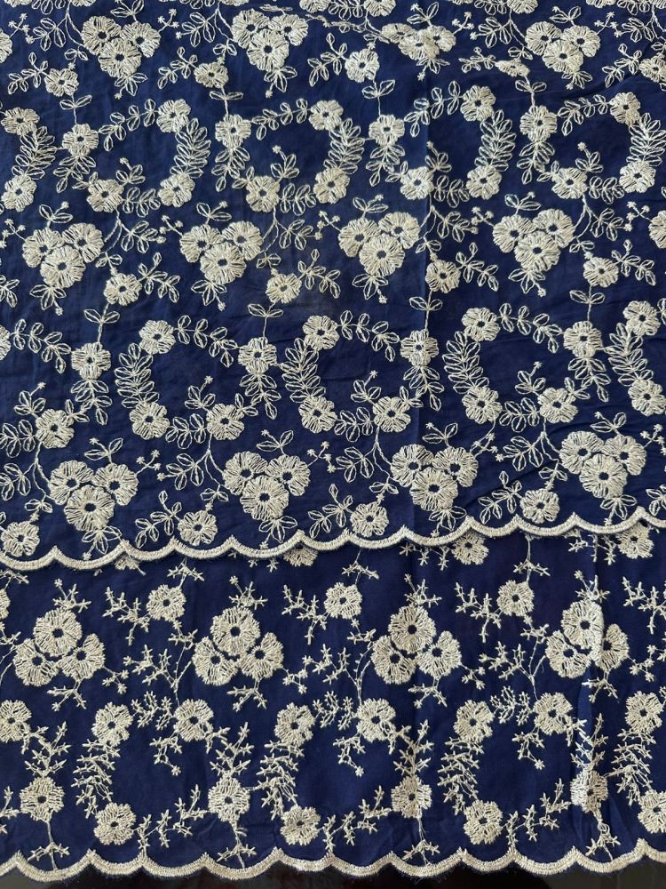 Tecido Lese De Algodão Azul Bicos