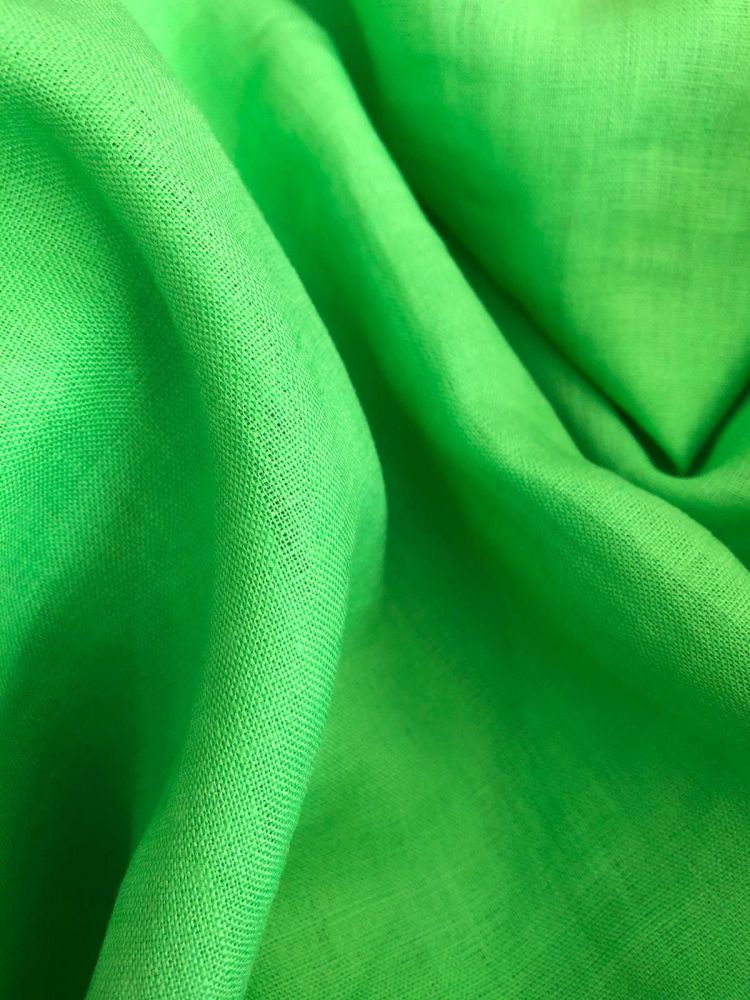 TTecido Linho Puro Liso Green Flash com textura natural, alta respirabilidade e caimento elegante. Ideal para roupas refinadas e peças que valorizam o visual rústico sofisticado.
