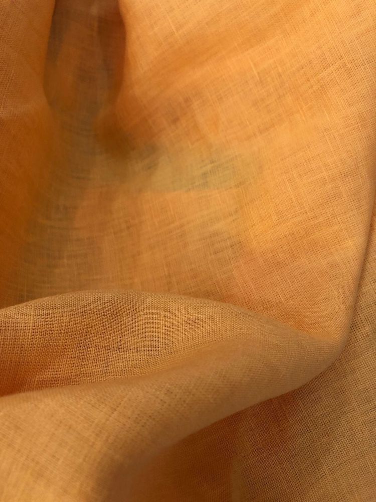 TTecido Linho Puro Liso Laranja com textura natural, alta respirabilidade e caimento elegante. Ideal para roupas refinadas e peças que valorizam o visual rústico sofisticado.