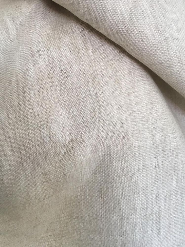Tecido Linho Puro Liso Cor Natural com toque macio, textura suave e caimento fluido. Ideal para peças elegantes que combinam leveza, movimento e acabamento sofisticado.