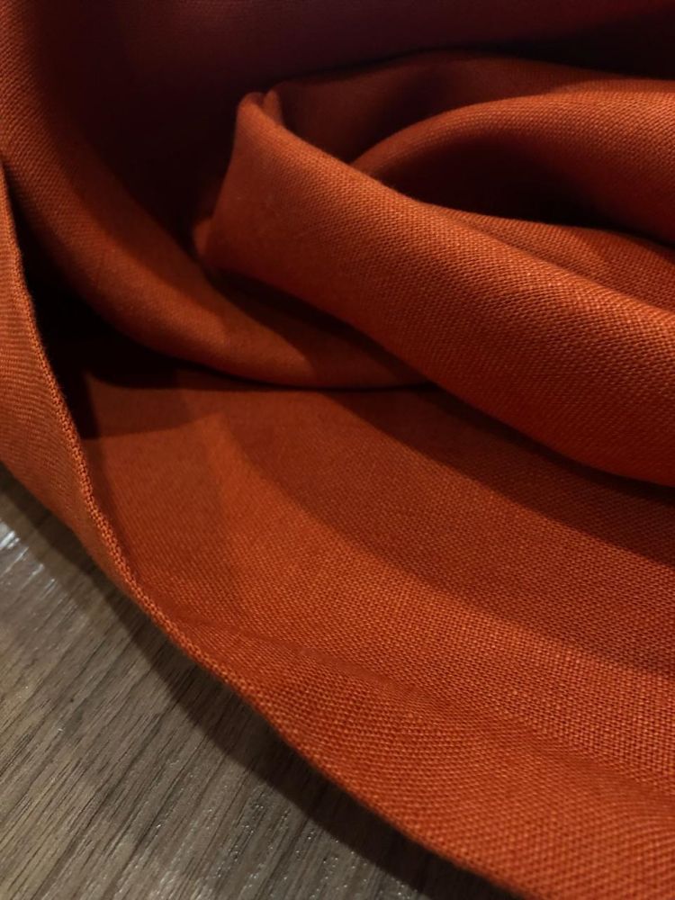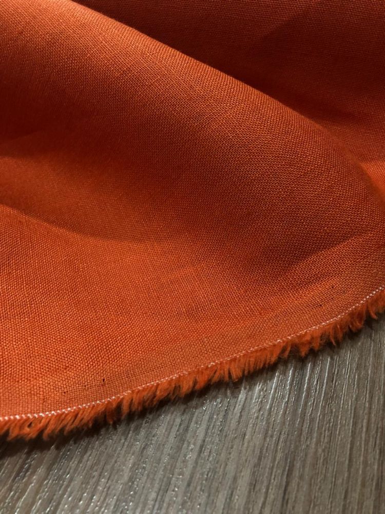 Tecido Linho Puro Liso Abobora com toque macio, textura suave e caimento fluido. Ideal para peças elegantes que combinam leveza, movimento e acabamento sofisticado.
