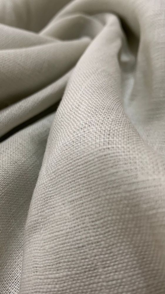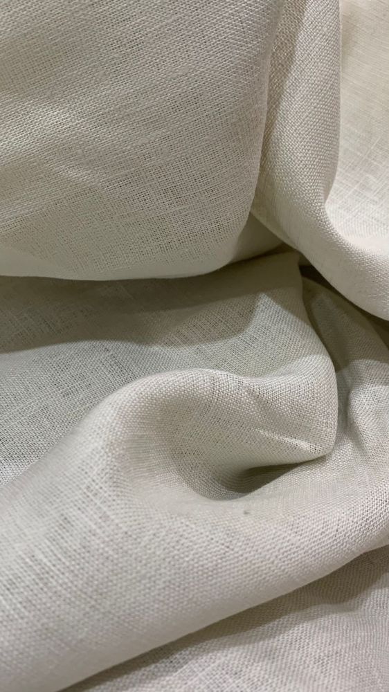 Tecido Linho Puro Liso Pérola com toque macio, textura suave e caimento fluido. Ideal para peças elegantes que combinam leveza, movimento e acabamento sofisticado.