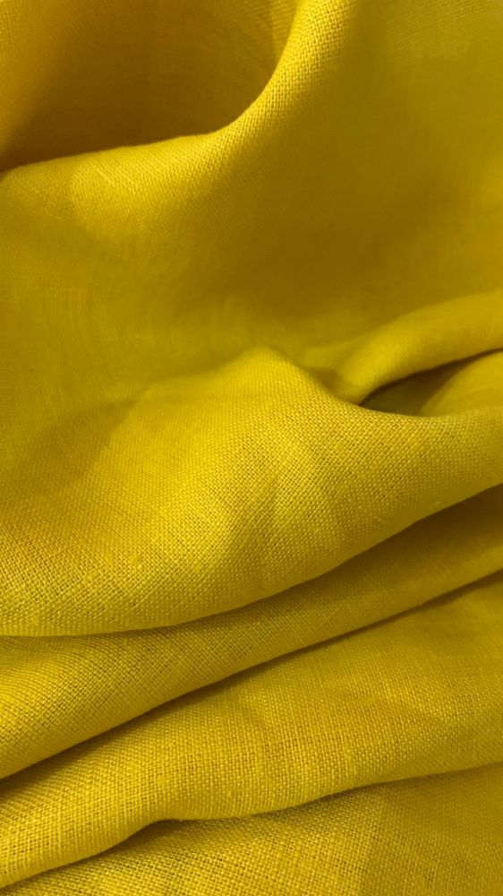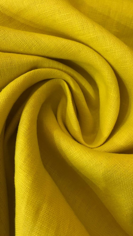 Tecido Linho Puro Liso Amarelo Vivo com toque macio, textura suave e caimento fluido. Ideal para peças elegantes que combinam leveza, movimento e acabamento sofisticado.