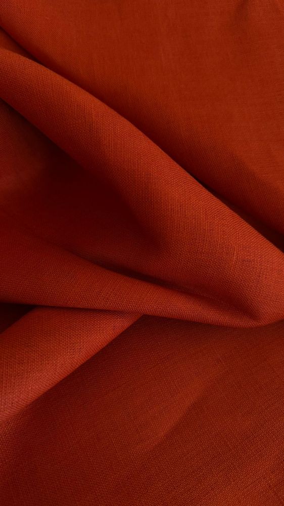 Tecido Linho Puro Liso Laranja Fogo com toque macio, textura suave e caimento fluido. Ideal para peças elegantes que combinam leveza, movimento e acabamento sofisticado.