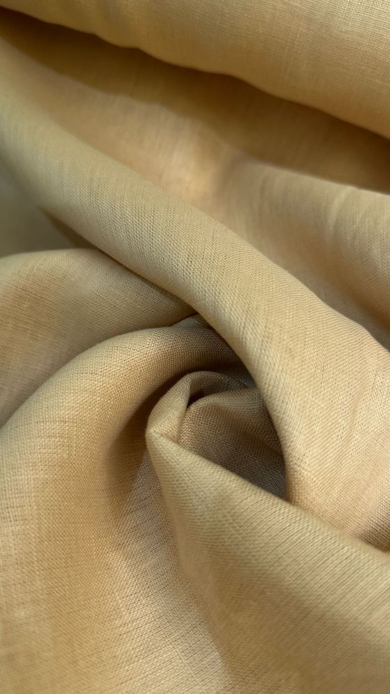 Tecido Linho Puro Liso Vanilla com toque macio, textura suave e caimento fluido. Ideal para peças elegantes que combinam leveza, movimento e acabamento sofisticado.