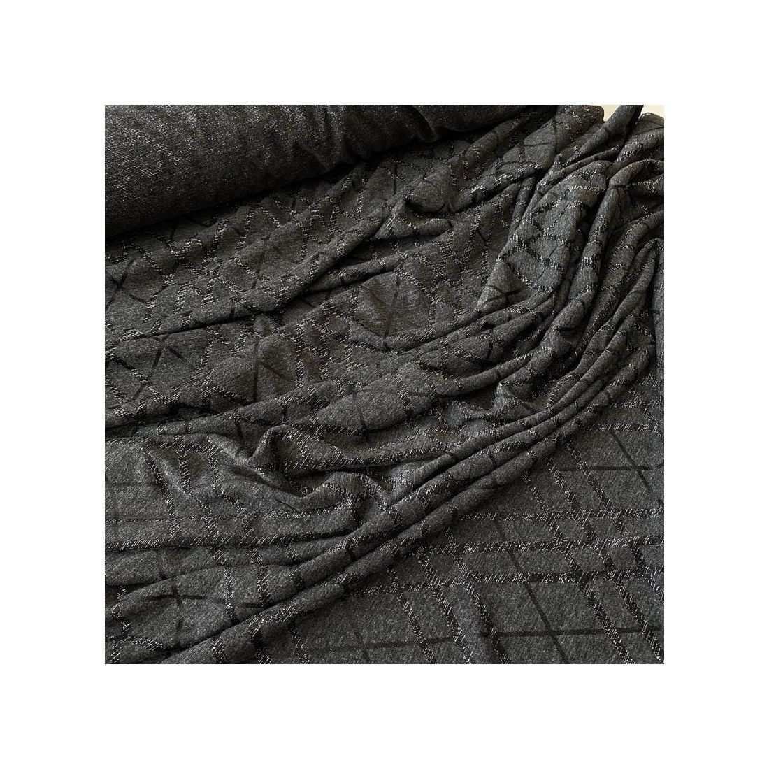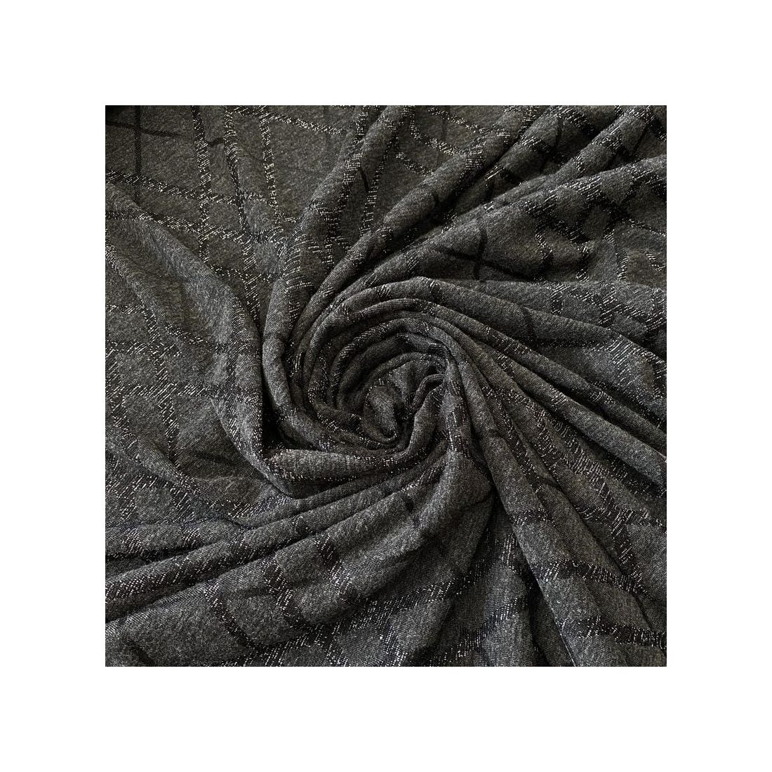 Tecido Malha Lurex Geo Shine Graphite – Brilho Metálico e Elasticidade Elegante