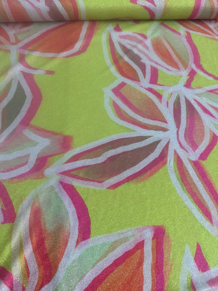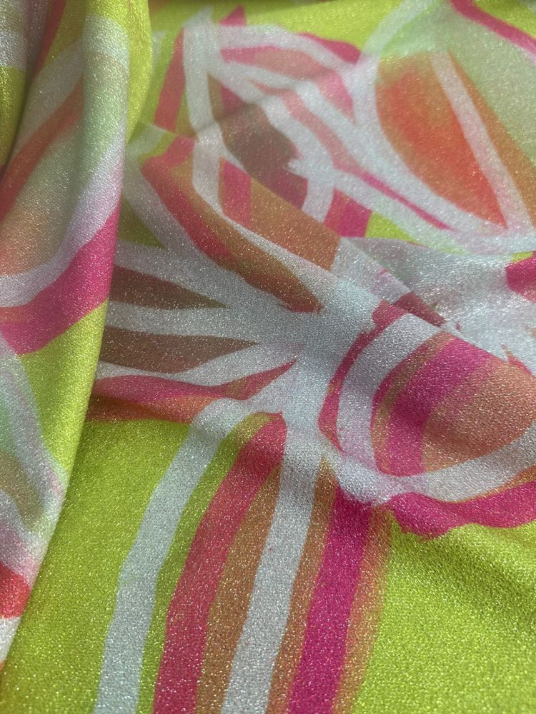 Tecido Malha Lurex Floral Aurora Citrus natural produzido a partir de fibras de origem animal, conhecido pelo excelente isolamento térmico e durabilidade. É amplamente utilizada na moda inverno e em peças de alfaiataria que exigem conforto e elegância.
