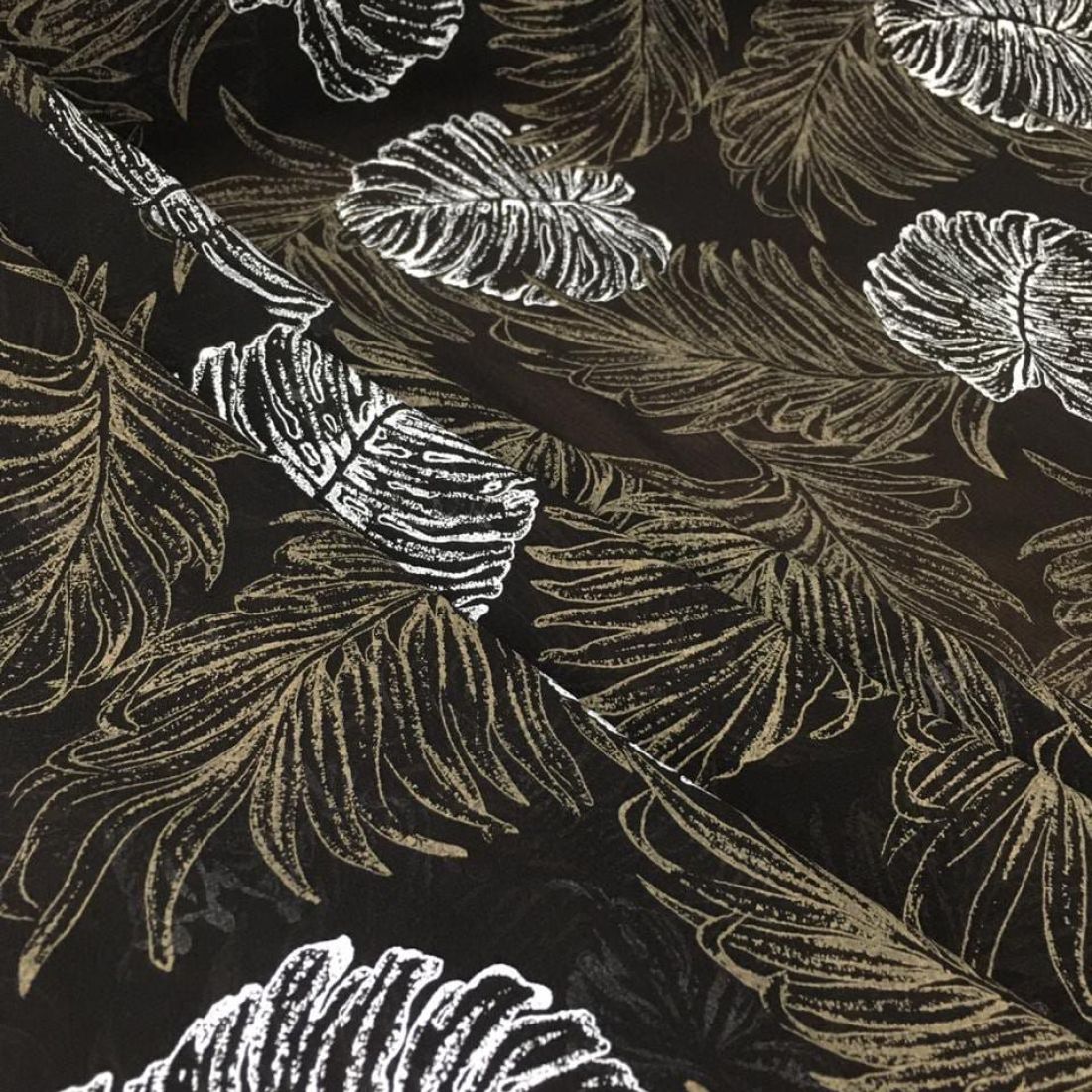 Tecido Musseline Seda Pura Folhagem Tropical Ébano – Leve, Delicada e com Movimento Suave