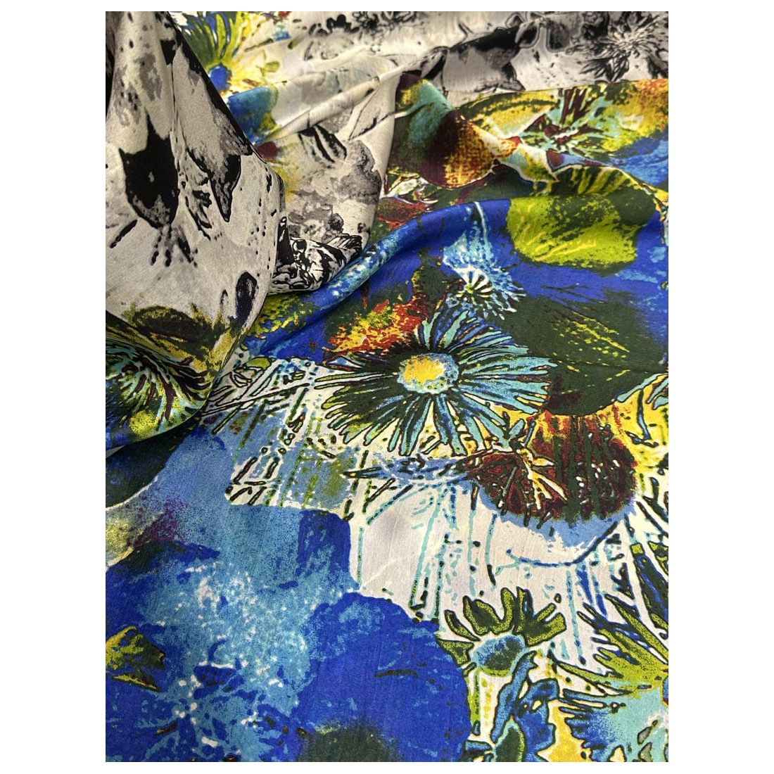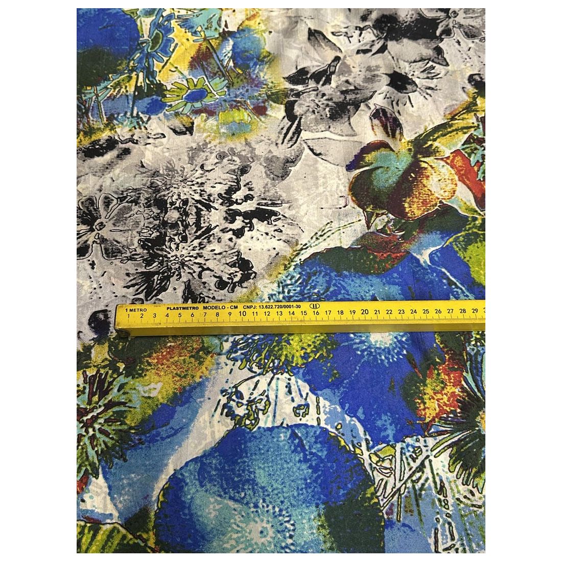 Tecido Palha De Seda Estampada Floral Azul Profundo – Textura Natural e Estrutura Elegante