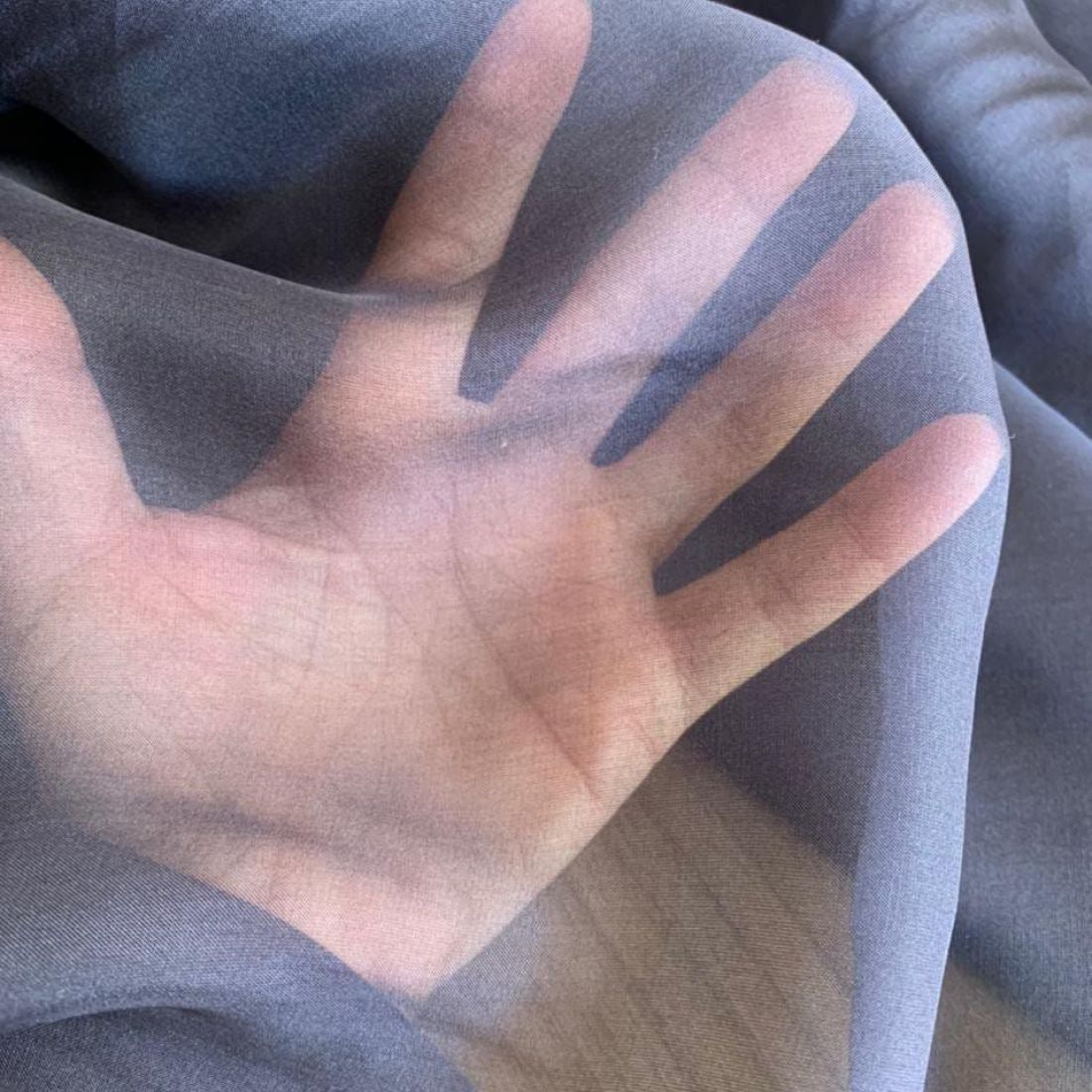Tecido Palha De Seda Liso Azul Marinho com toque macio, excelente respirabilidade e caimento leve. Ideal para roupas frescas e confortáveis, sendo amplamente utilizado na moda feminina e peças de verão.