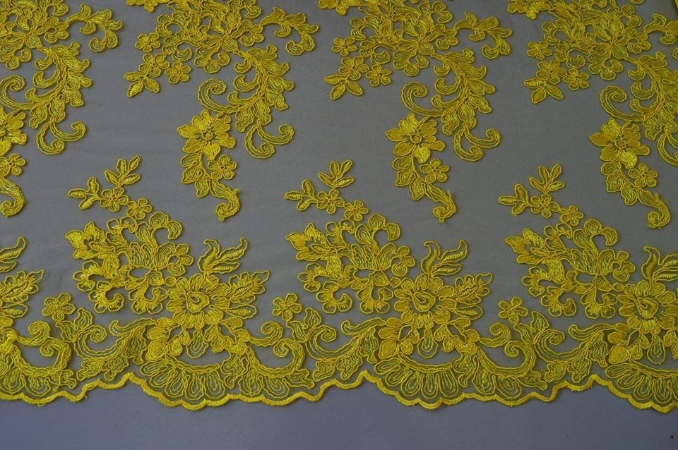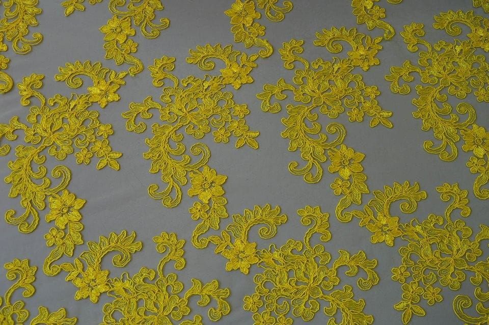 Tecido Tule Bordado Gália Amarelo