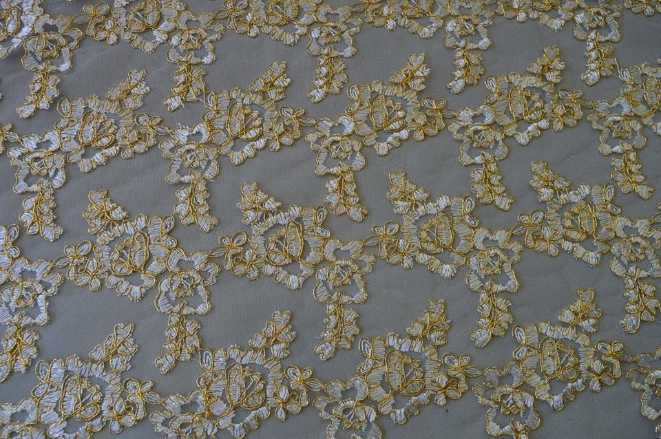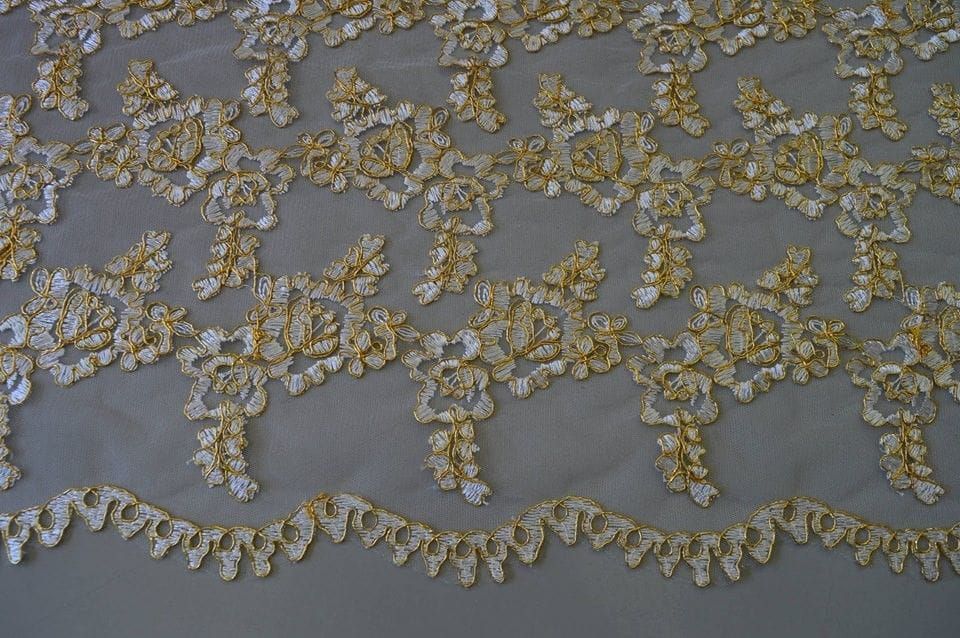 Tecido Tule Bordado Dourado